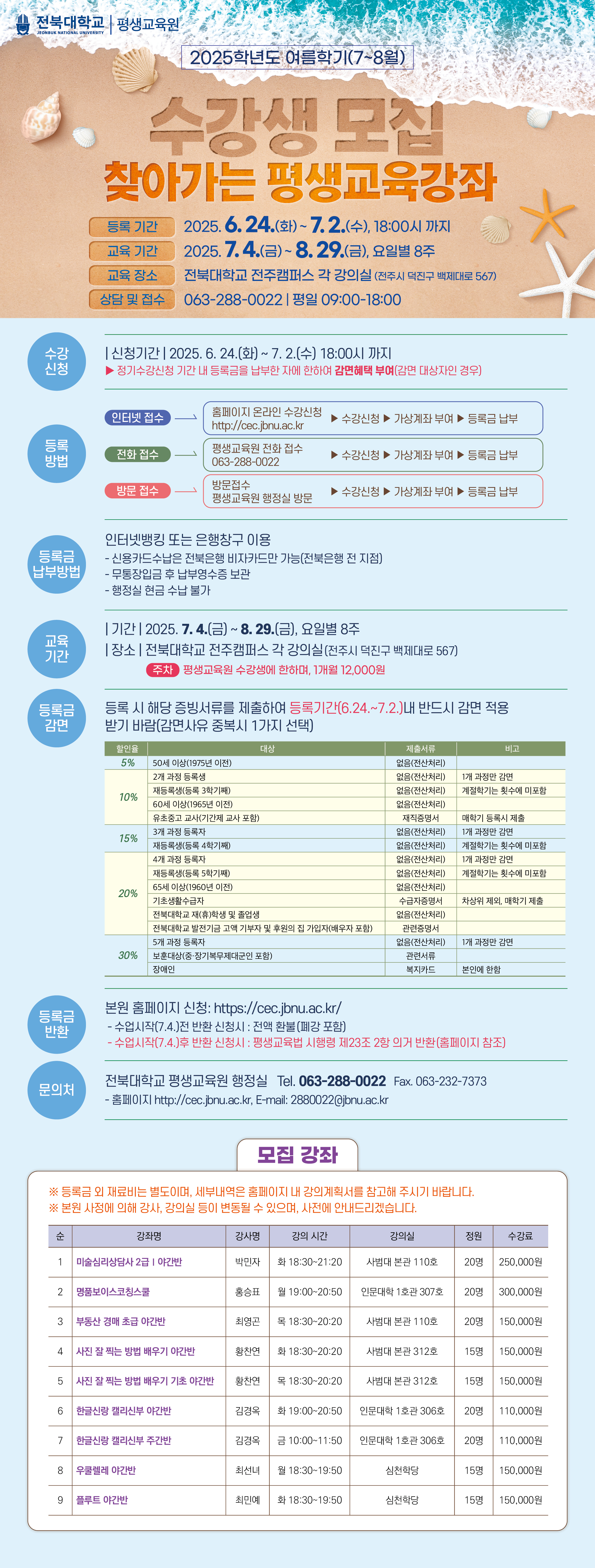 [평생교육원] 찾아가는 평생교육강좌 수강생 모집(2025학년도 여름학기 7~8월), 8주