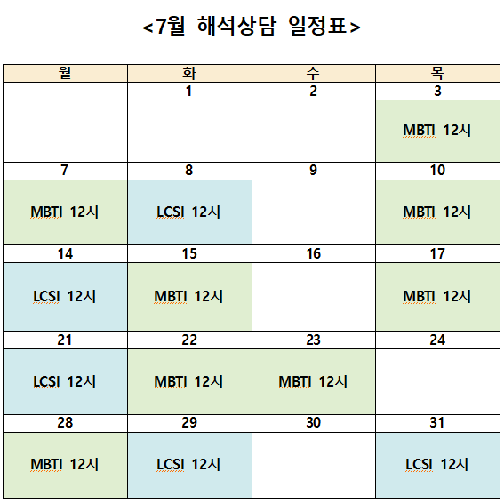 ○ 8월 심리검사 신청 일정은 7월 넷째주 월요일(7/21) 오후에 확인할 수 있습니다.
