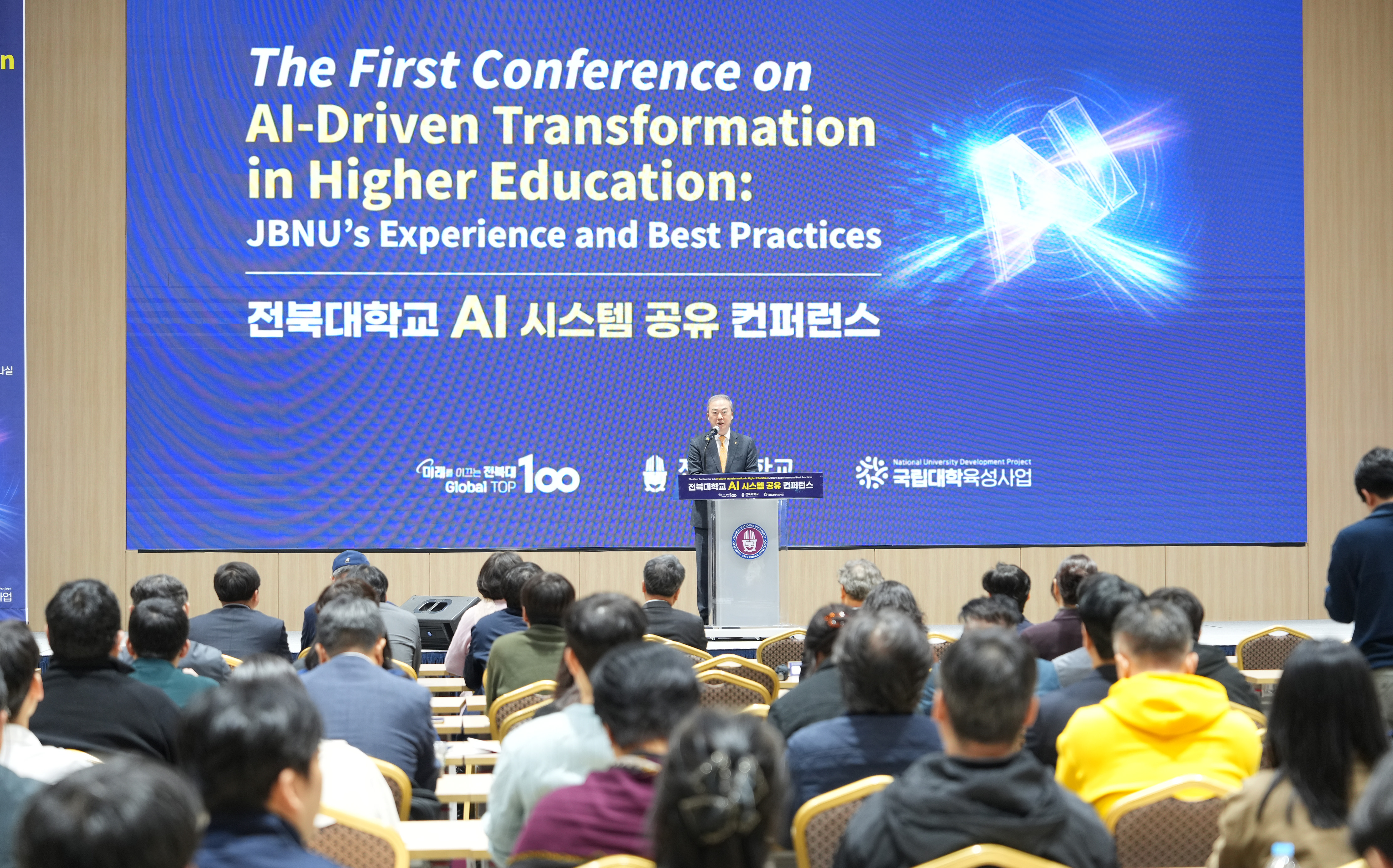 JBNU, which is undertaking an 'AI University Transformation' to comprehensively innovate all areas—education, research, administration, and employment—based on artificial intelligence (AI) and data, held an 'AI System Sharing Conference' at the on‑campus International Convention Center on the 22nd and unveiled AI‑based integrated innovation models.