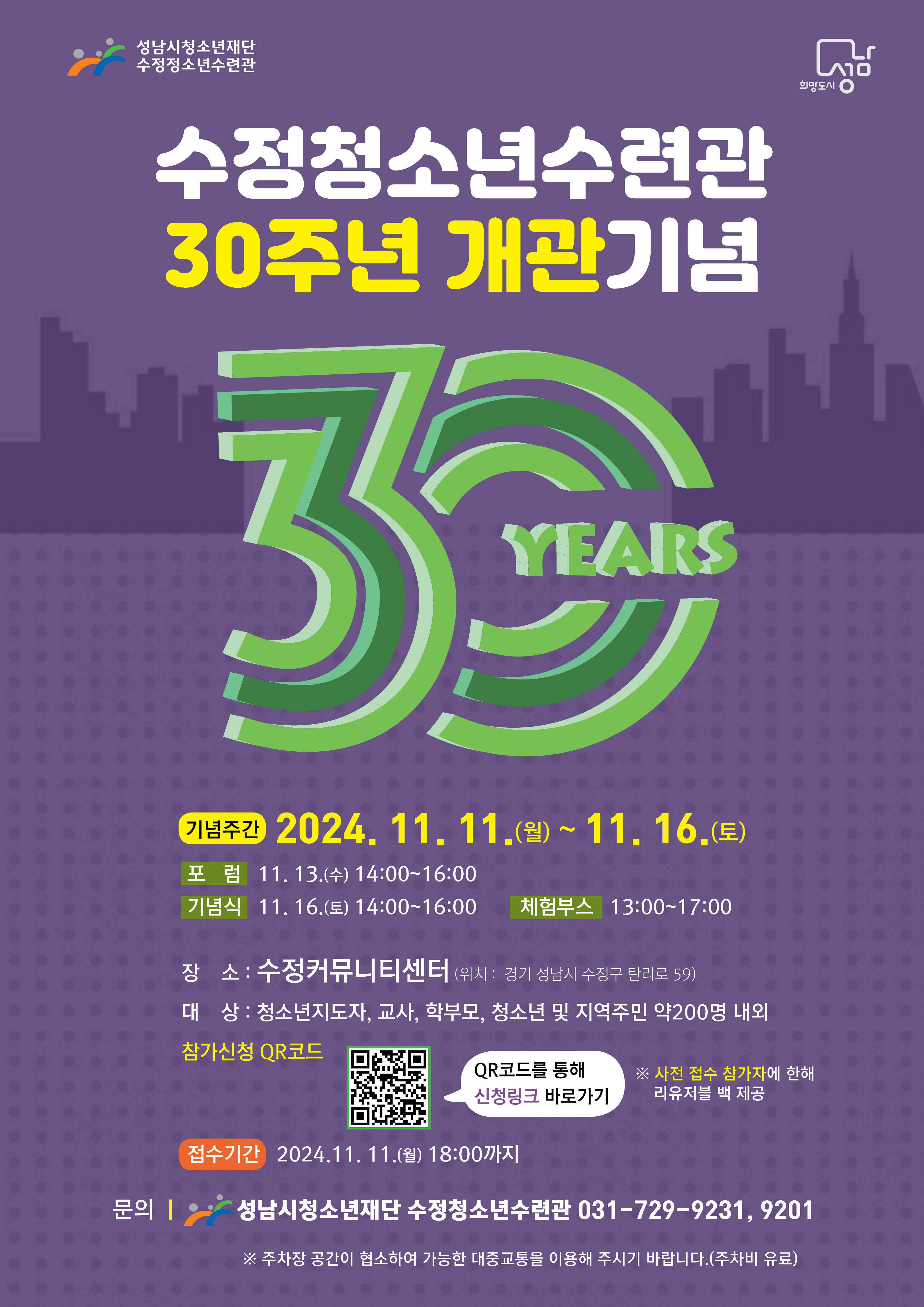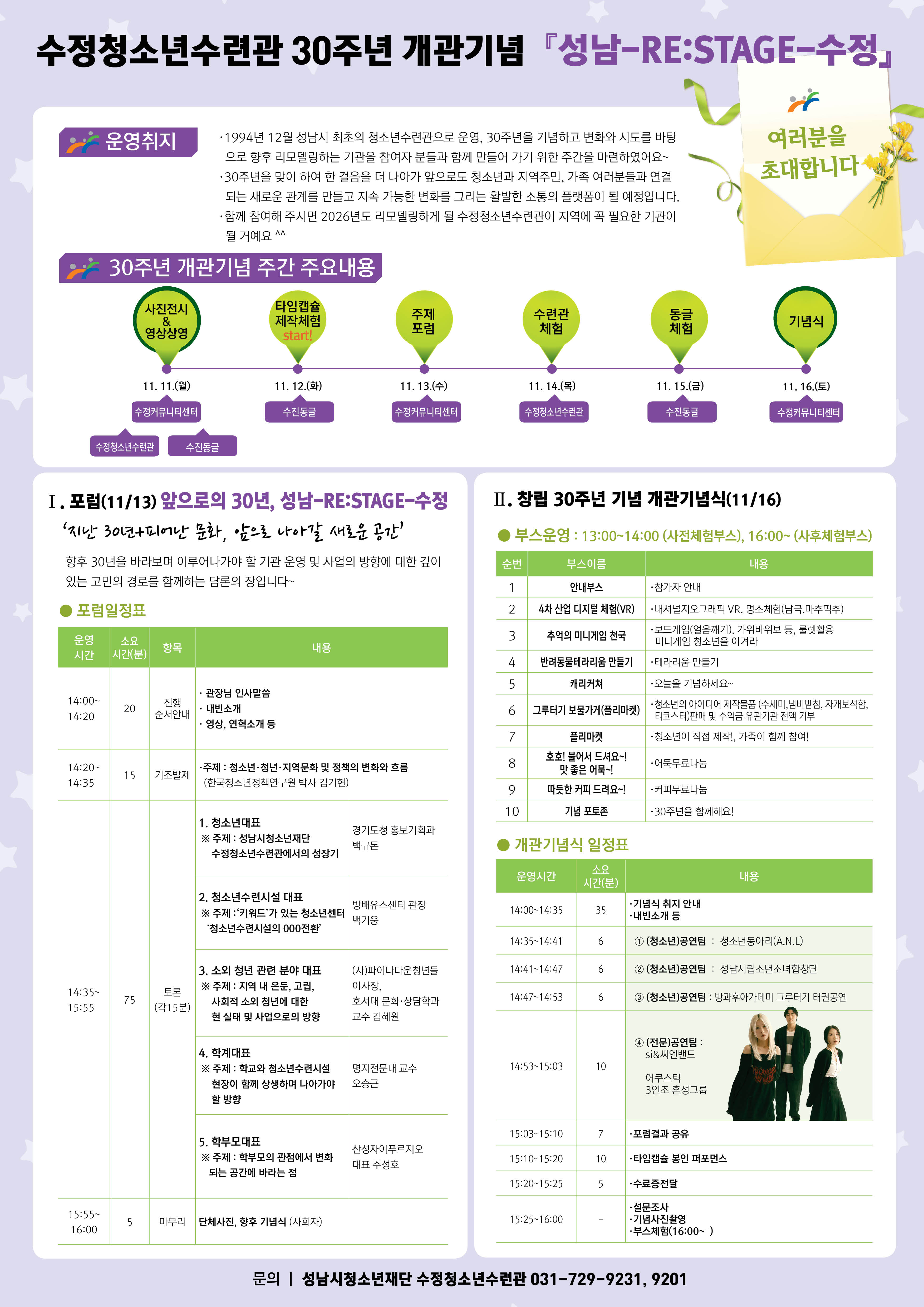 (성남시청소년재단) 수정청소년수련관 30주년 개관기념주간 운영