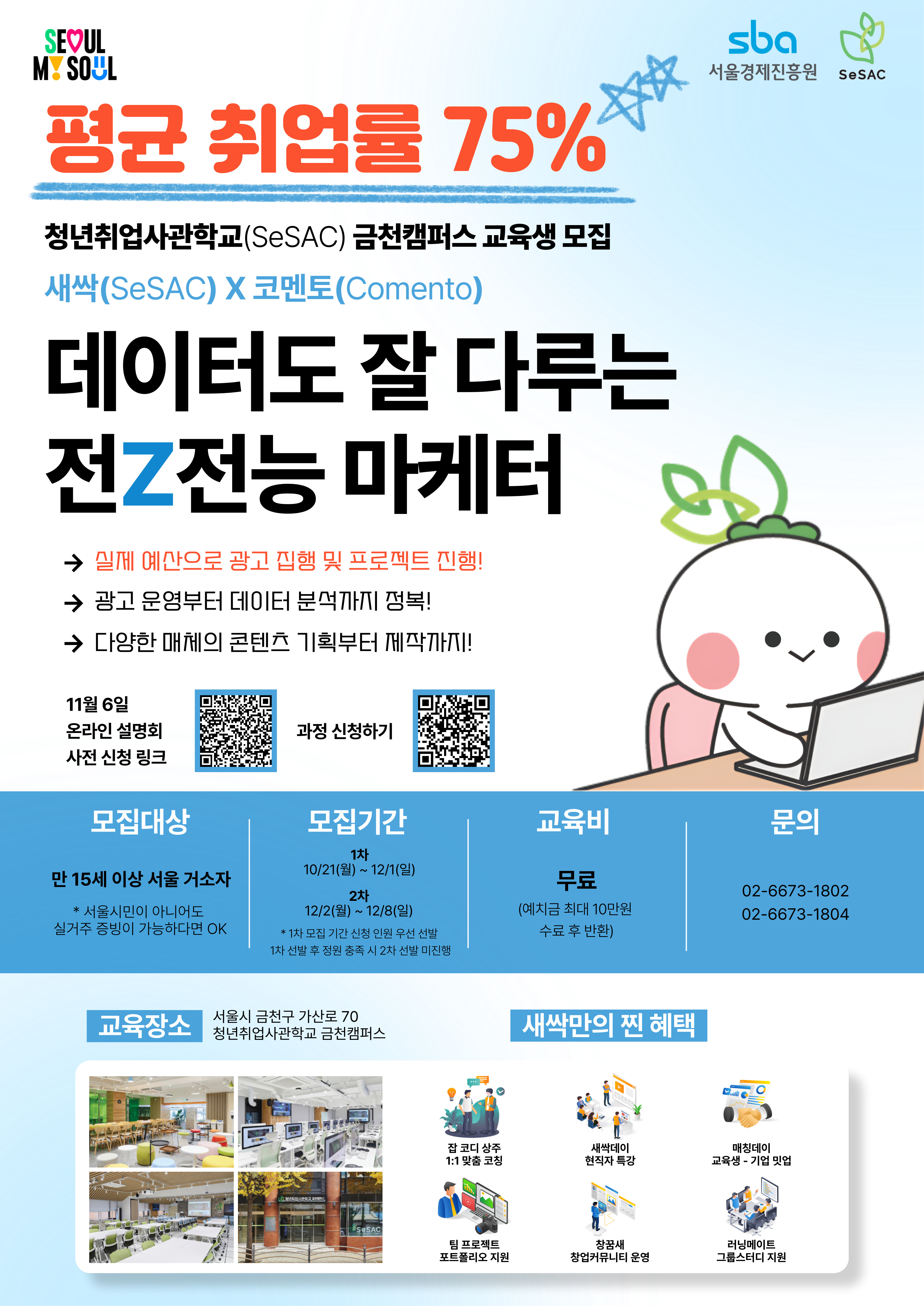 서울경제진흥원에서 청년취업사관학교 새싹 강서/금천캠퍼스 DT 5기 교육생을 모집합니다. 관심있는 학생들의 많은 참여바랍니다.