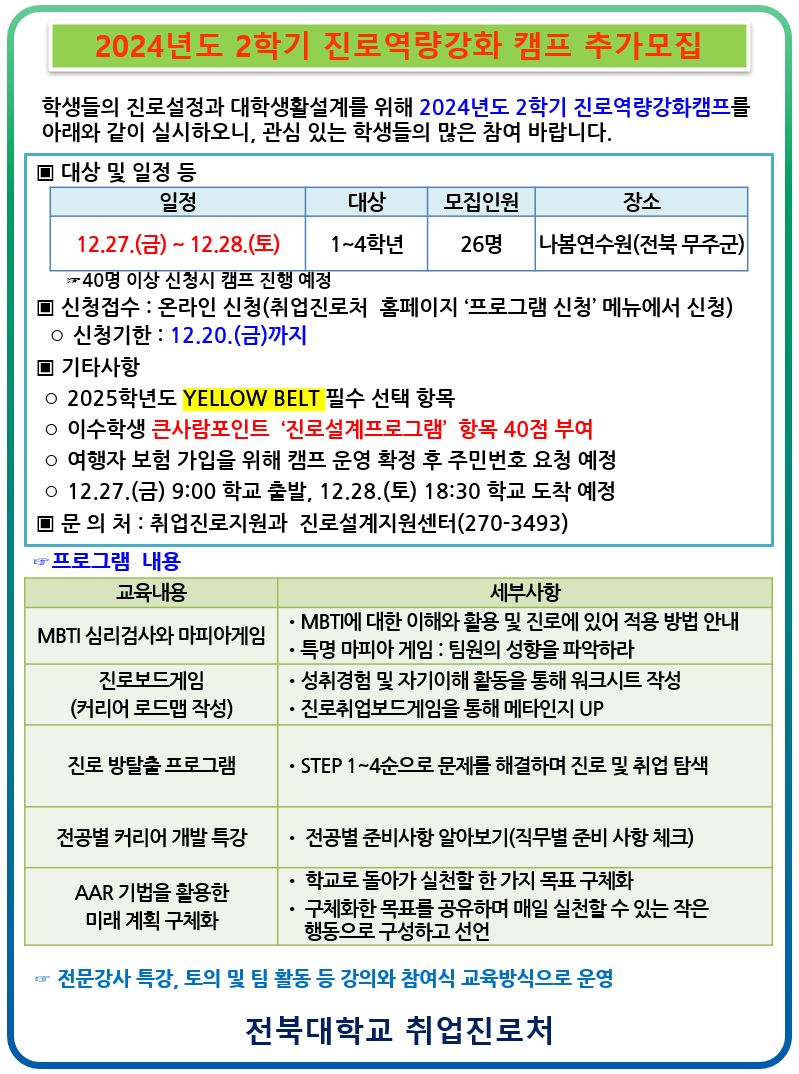 [추가모집]2024년도 2학기 진로역량강화 캠프 안내(12.27.~28.)