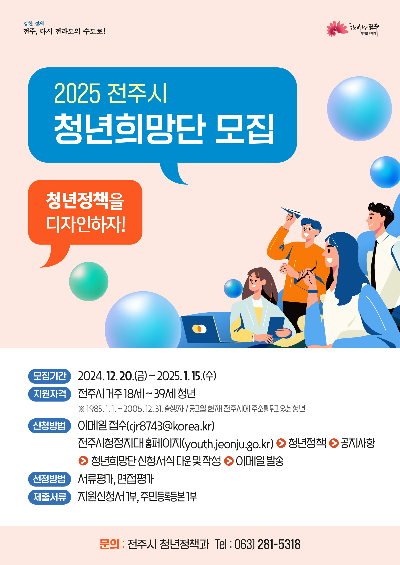 전주시에서는 제9기 청년희망단을 공개모집한다고합니다. 관심있는 학생들은 많은 참여바랍니다.