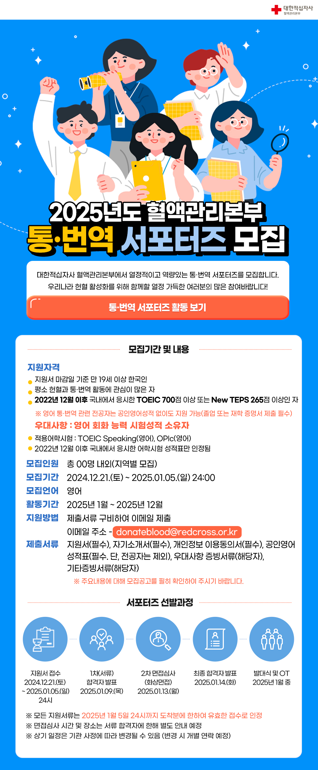 (대한적십자사) 2025년도 혈액관리본부 통·번역 서포터즈 모집