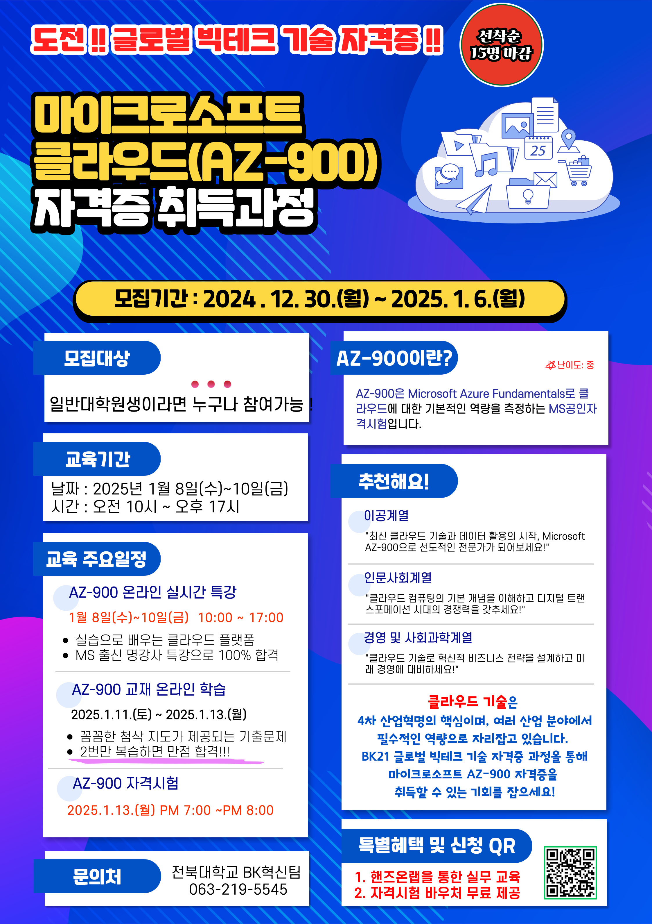 Microsoft 클라우드 국제인증자격증(소비자가 110,000원) “Microsoft Azure Fundamentals(AZ-900)”응시 지원 |