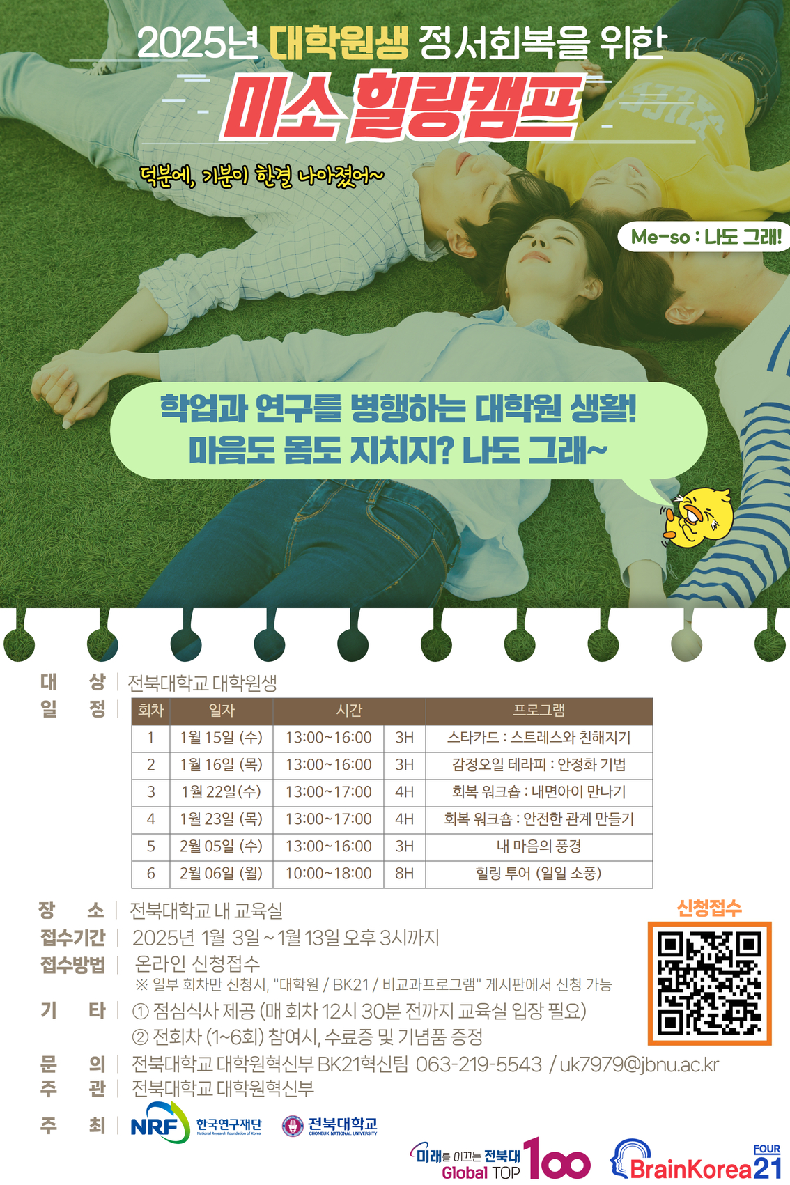 [BK21] 대학원생 정신건강지원 프로그램_미소힐링캠프 참가 안내