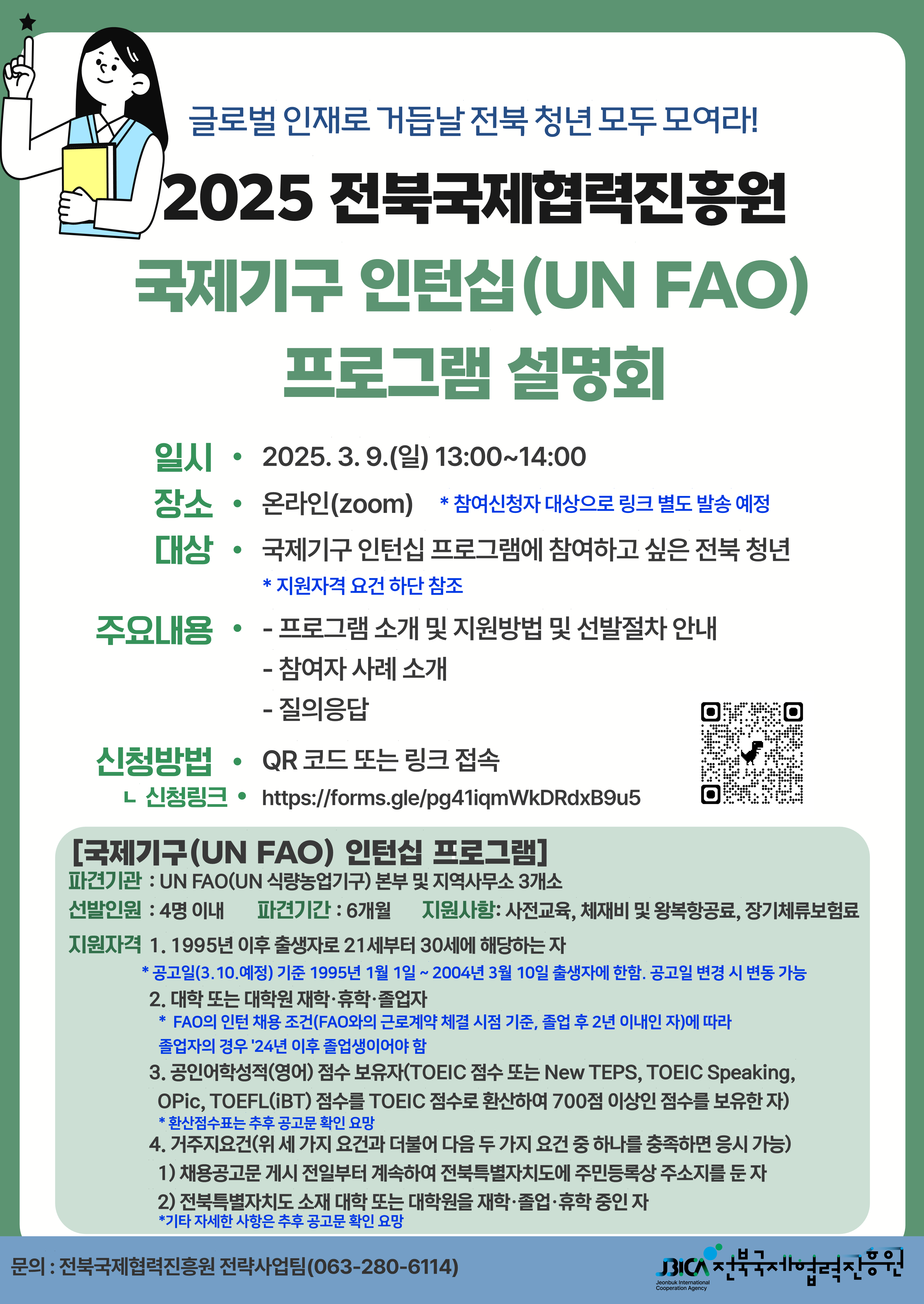 (전북국제협력진흥원) 2025 국제기구 인턴십 프로그램 모집 및 설명회 개최