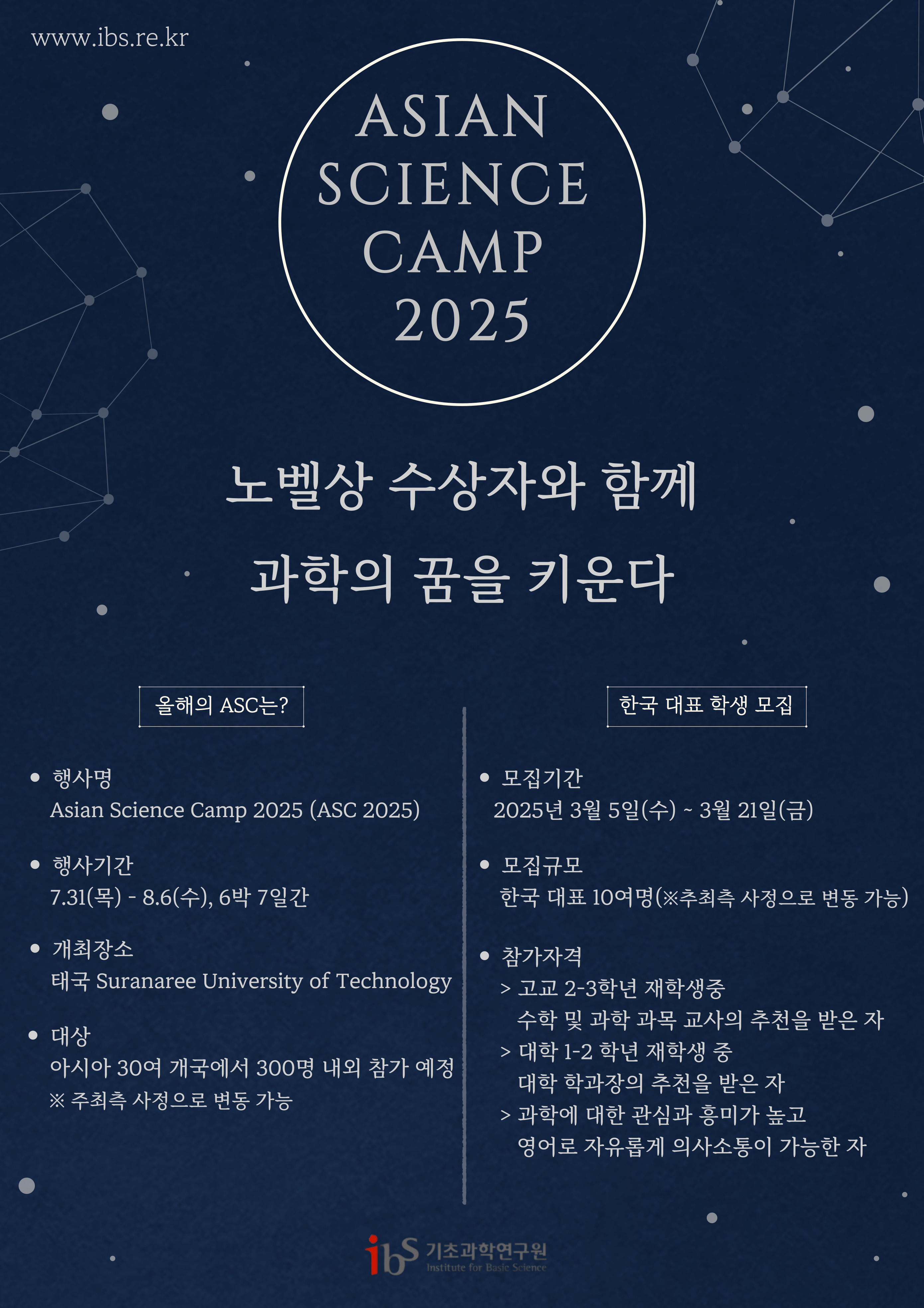 (기초과학연구원) Asian Science Camp 2025 학국 대표 학생 모집 홍보