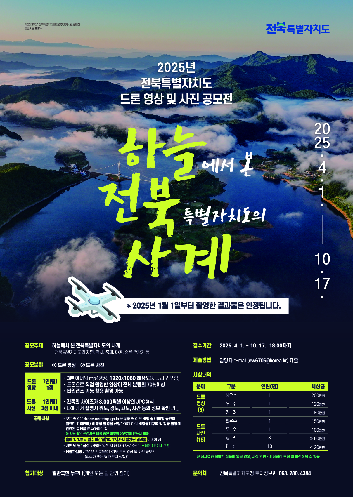 (전북특별자치도청) 「2025 전북특별자치도 드론 영상 및 사진 공모전」 개최 안내