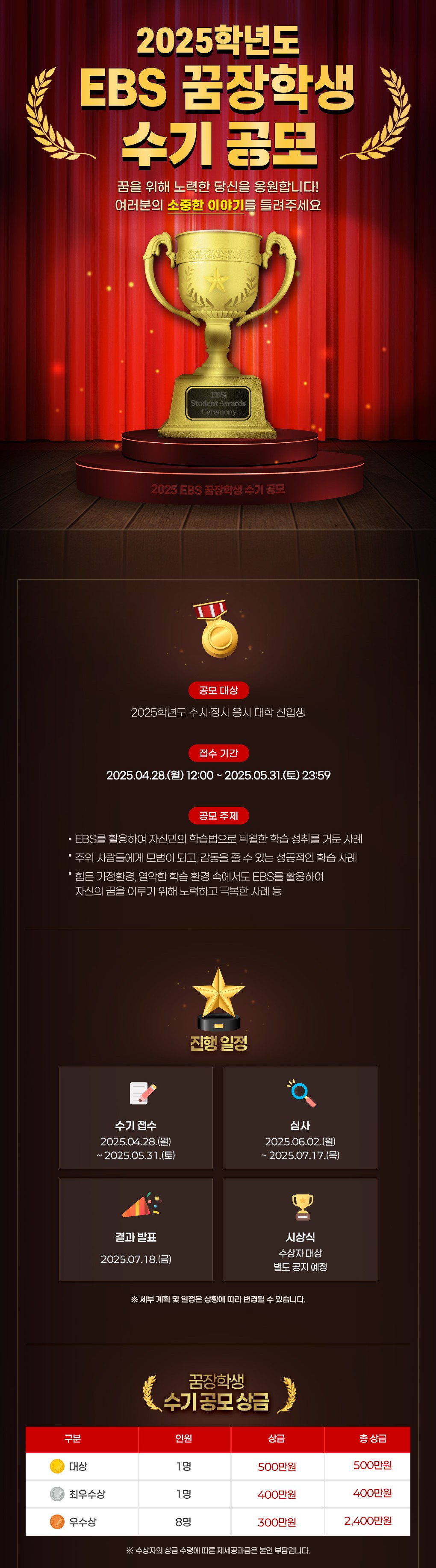(한국교육방송공사) 2025학년도 EBS 꿈장학생 수기 공모전 안내
