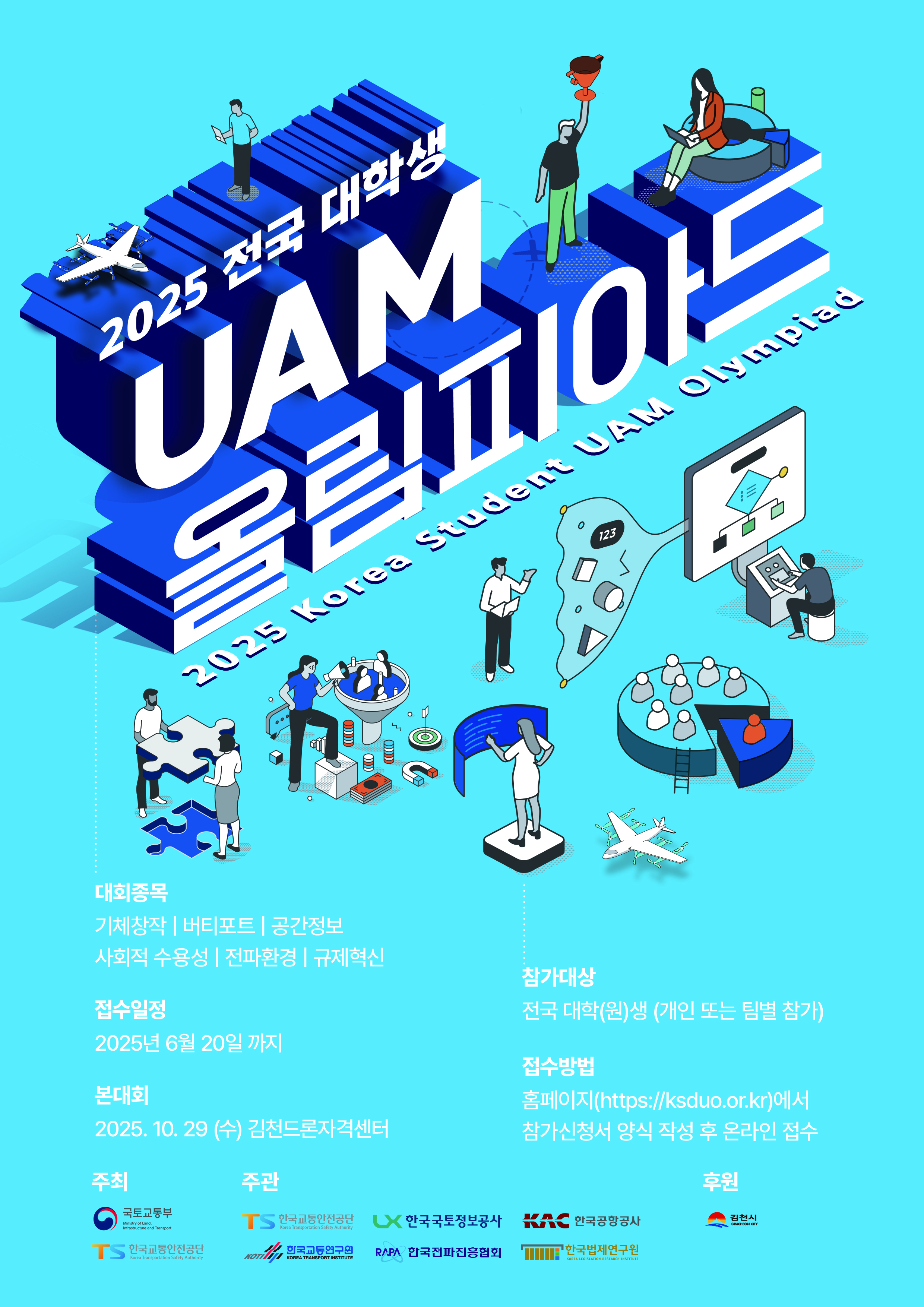 한국교통안전공단에서 「2025 전국 대학생 UAM 올림피아드 대회」를 개최합니다. 관심있는 학생들은 많은 참여 바랍니다.