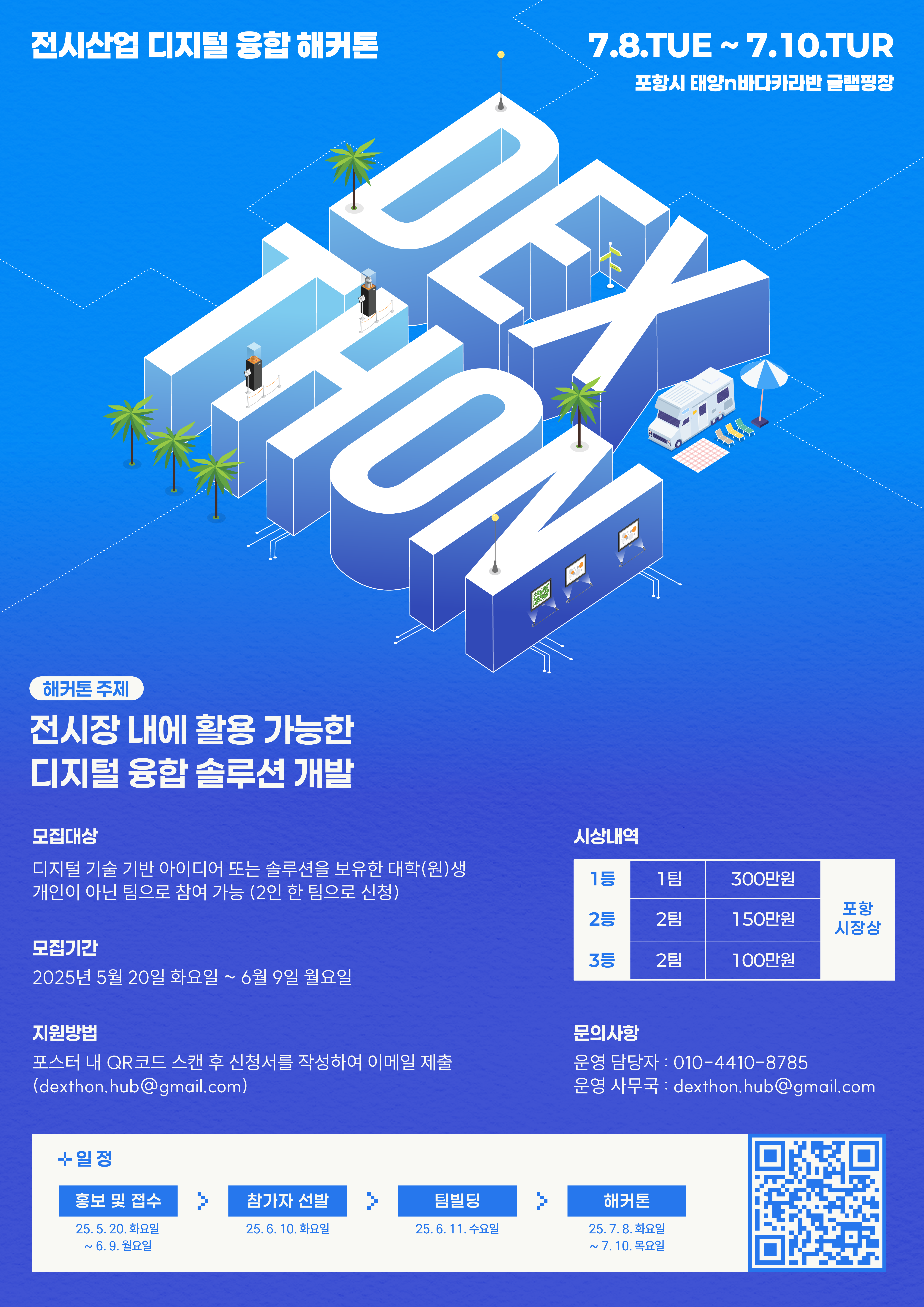 포항시에서 「전시산업 디지털 융합 해커톤」 참가자를 모집합니다. 관심있는 학생들은 많은 참여 바랍니다.