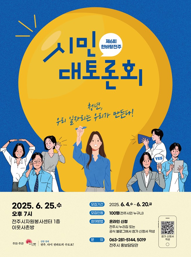 전주시에서 「제6회 한바탕전주 시민대토론회」를 개최합니다. 관심있는 학생들은 많은 참여바랍니다.