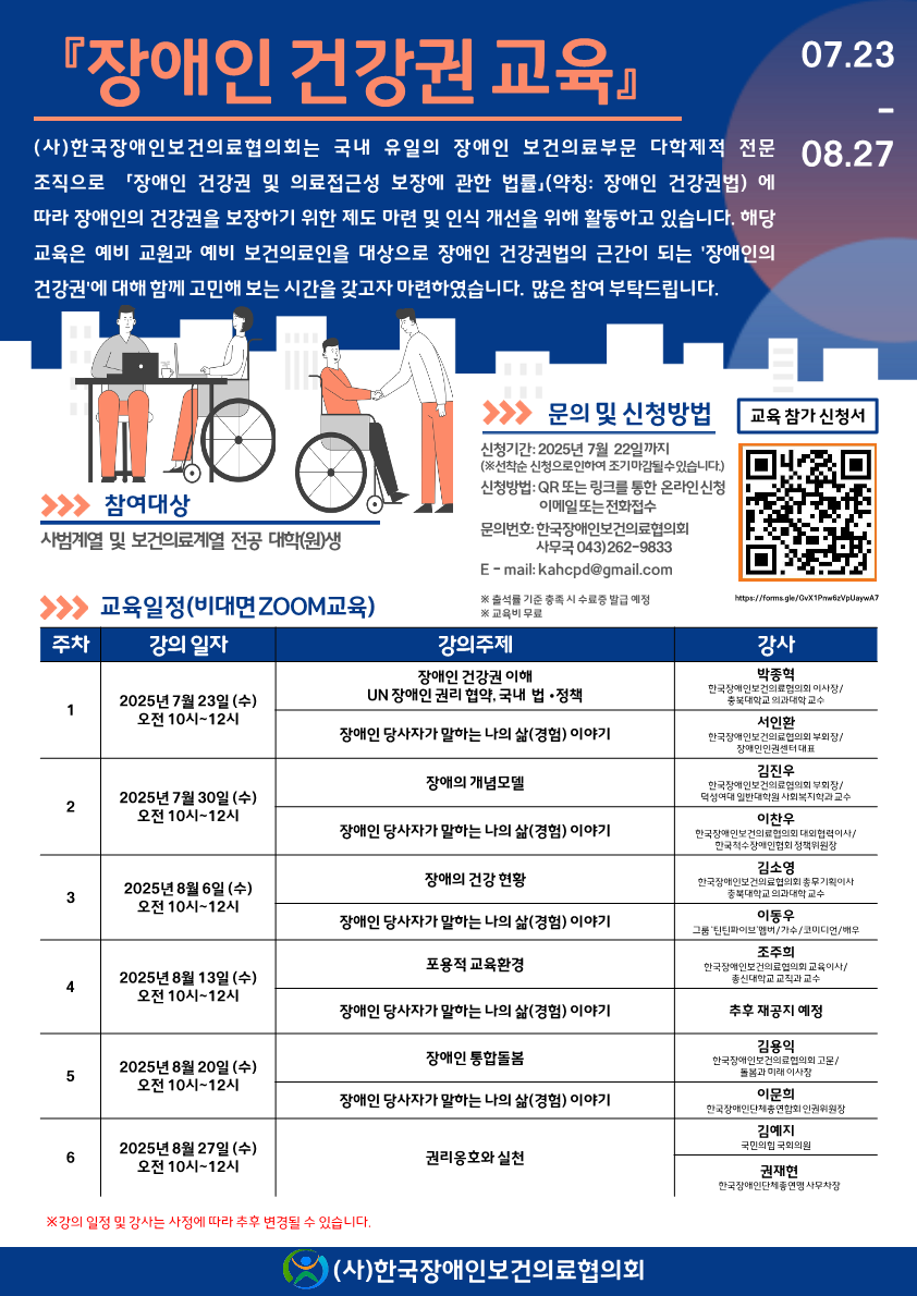 (한국장애인보건의료협의회) 2025년 「장애인 건강권 교육」 프로그램 참여 안내