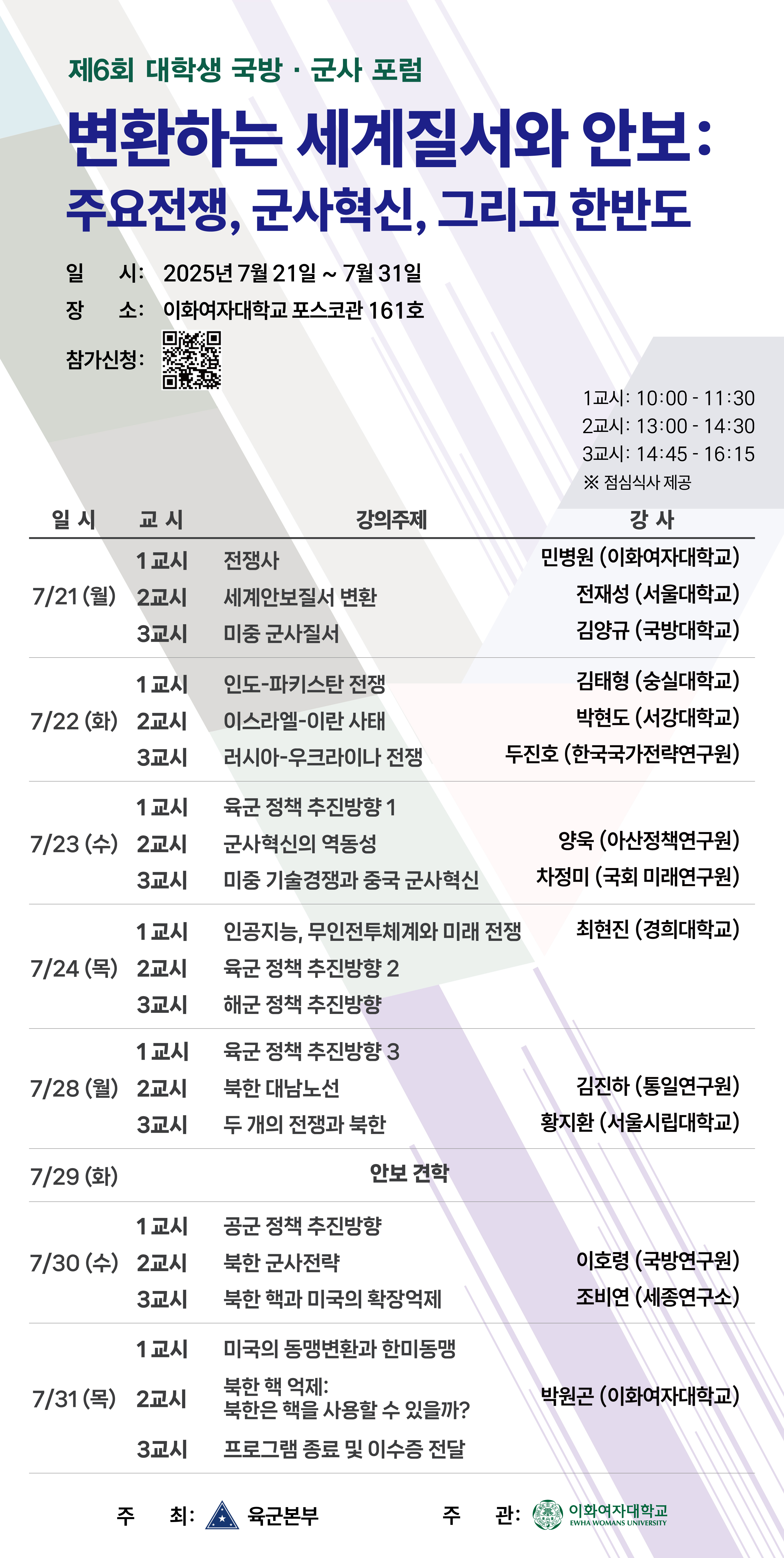일시 : 2025.7.21.(월) ~ 7.31.(목) 오전 10시 ~ 오후 16시 15분