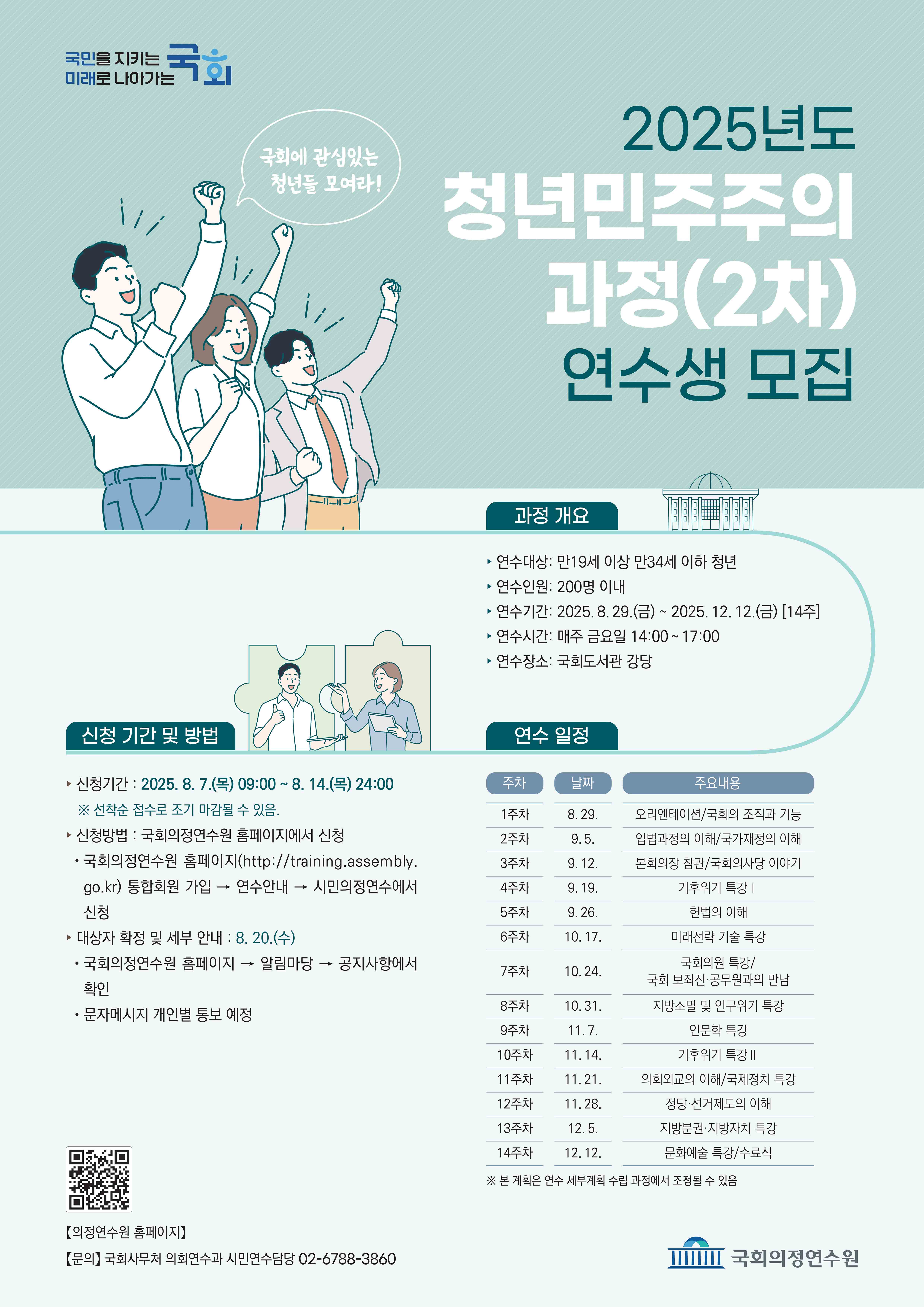 (국회사무처) 2025년도 국회 청년민주주의과정(2차) 안내