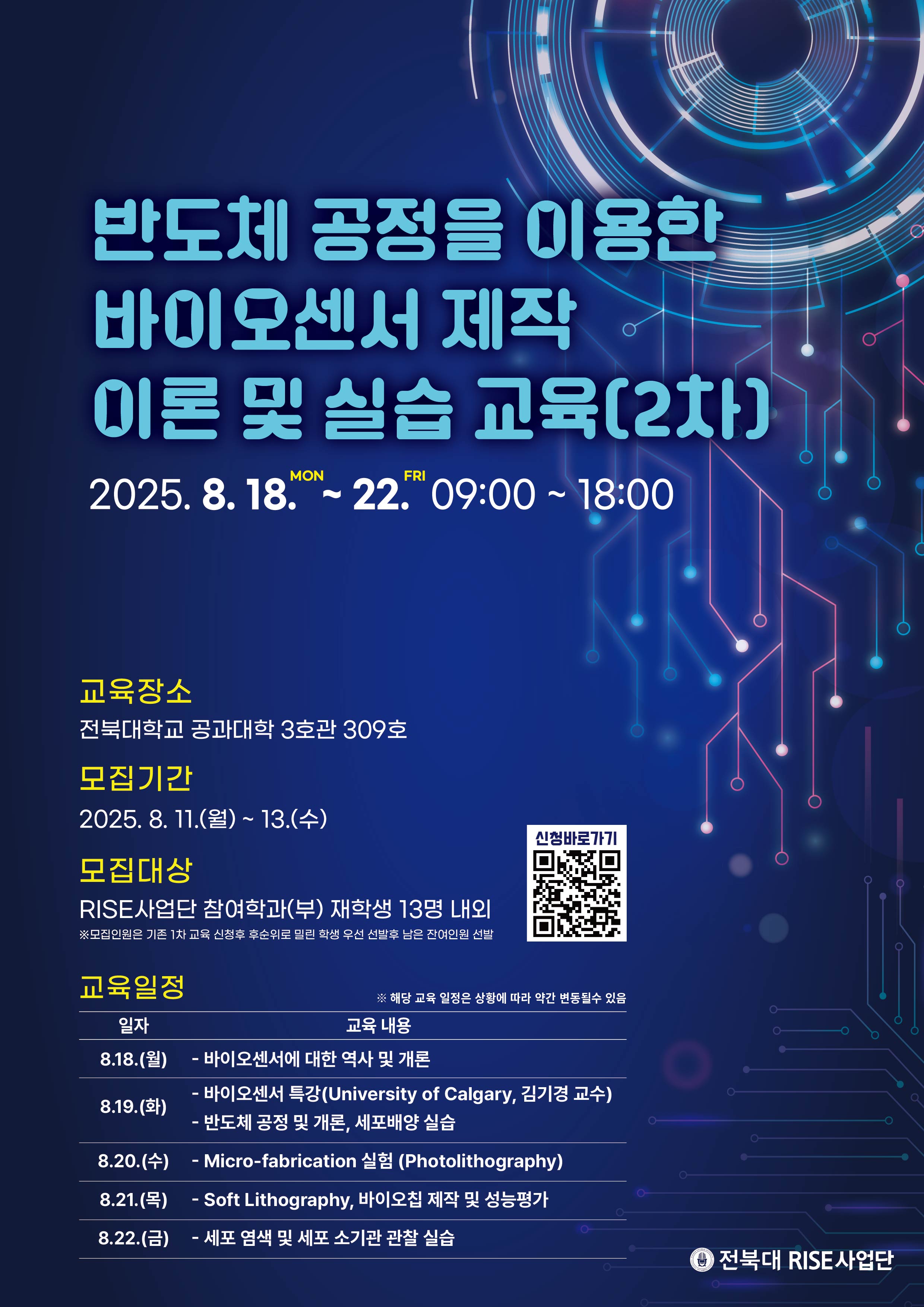 [RISE사업단] 반도체 공정을 이용한 바이오센서 제작 이론 및 실습 교육(2차) 모집