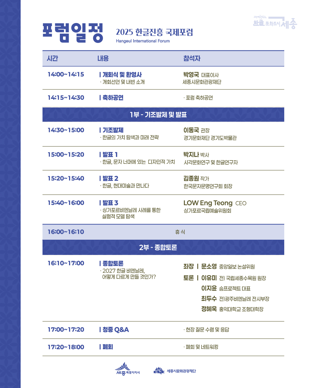 (세종시문화관광재단) 2025 한글진흥 국제교류 포럼 개최 안내