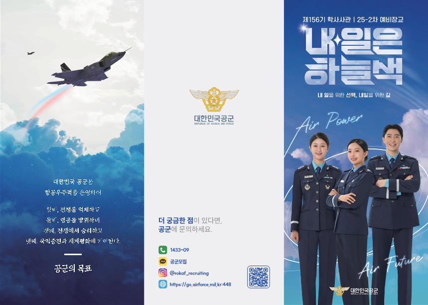 공군 본부에서 제156기 학사 사관 후보생 및 '25-2차 예비 장교 모집을 합니다. 관심있는 학생들은 많은 참여 바랍니다.