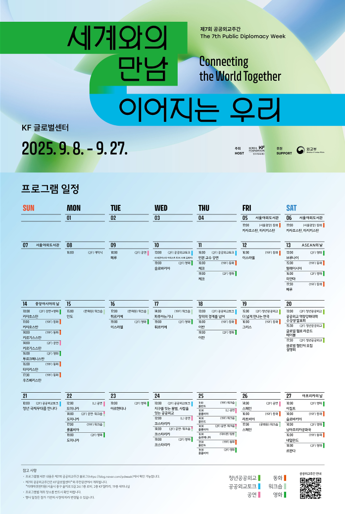 한국국제교류재단에서 제7회 공공외교주간 프로그램을 개최합니다. 관심있는 학생들은 많은 참여 바랍니다.