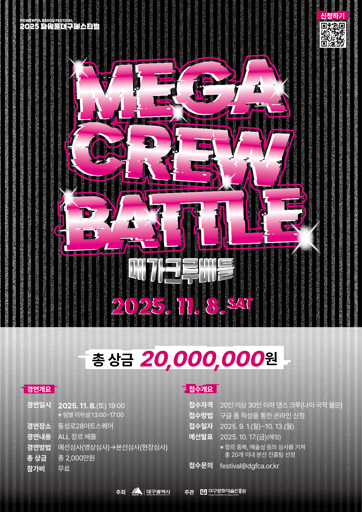 (대구문화예술진흥원) 2025 파워풀대구페스티벌 「메가크루배틀」 댄스팀 모집 안내