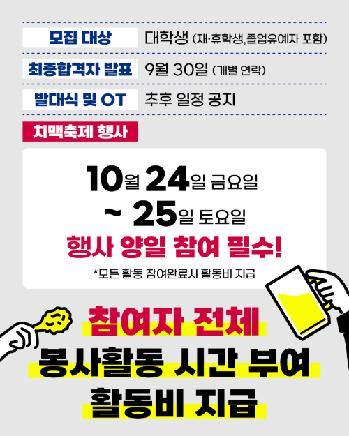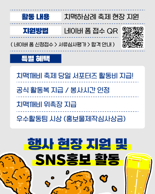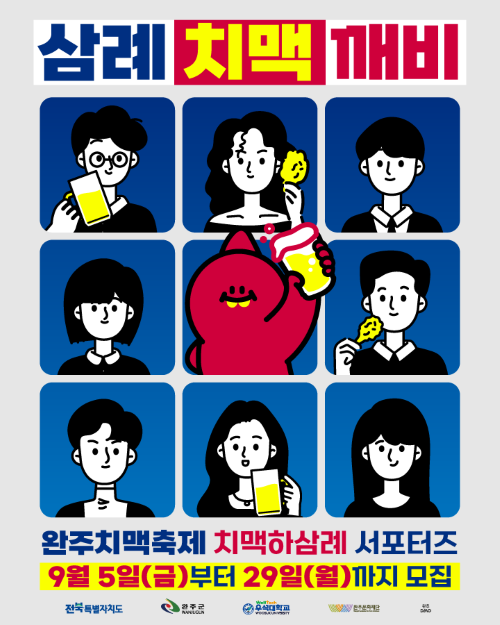 완주문화재단 2025 전북특별자치도 완주군 삼례 맥주축제 <치맥하삼:례> 서포터즈를 모집합니다. 관심있는 학생들은 많은 참여 바랍니다.