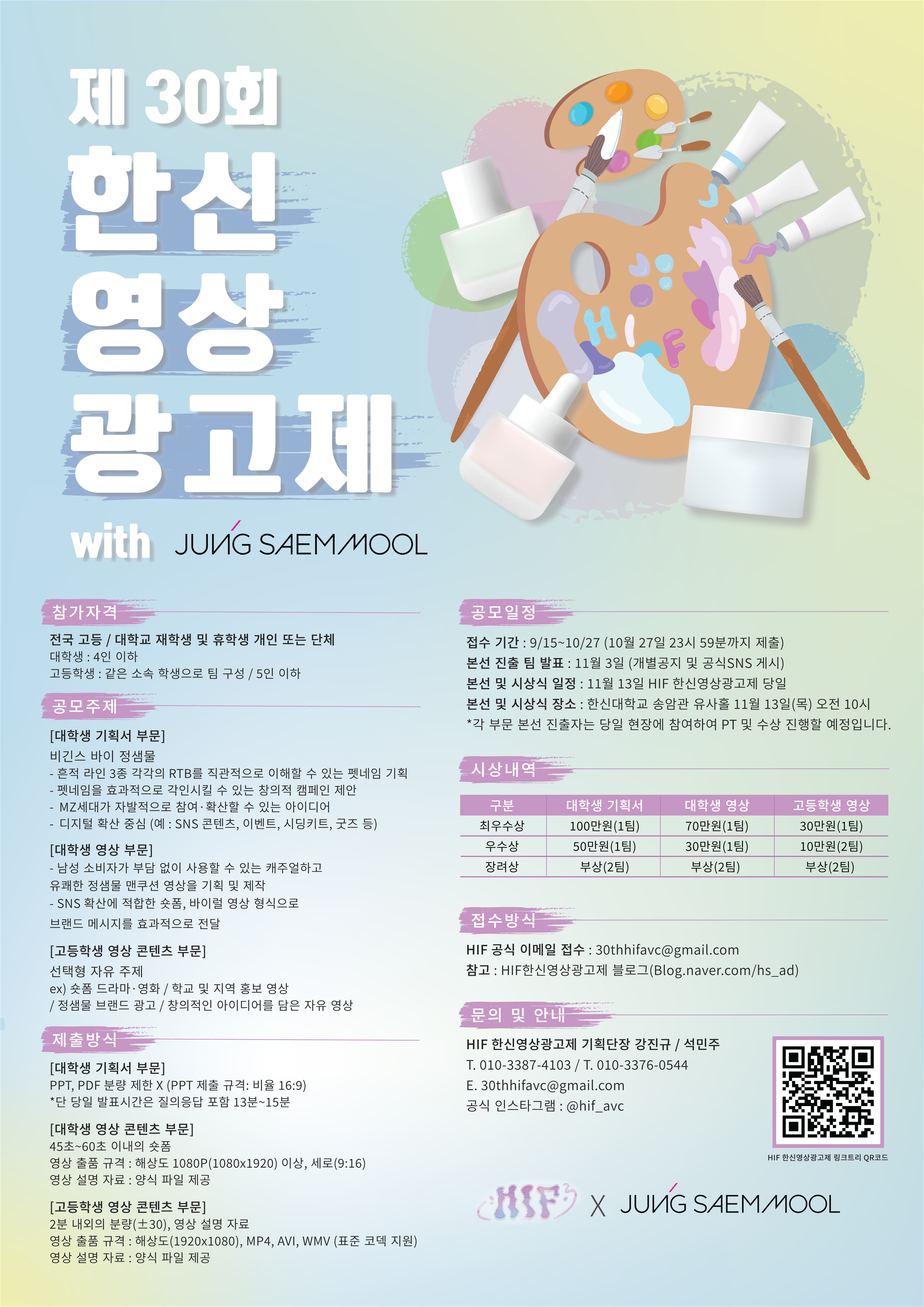 (한신대학교) 제30회 HIF 한신영상광고제 개최 안내