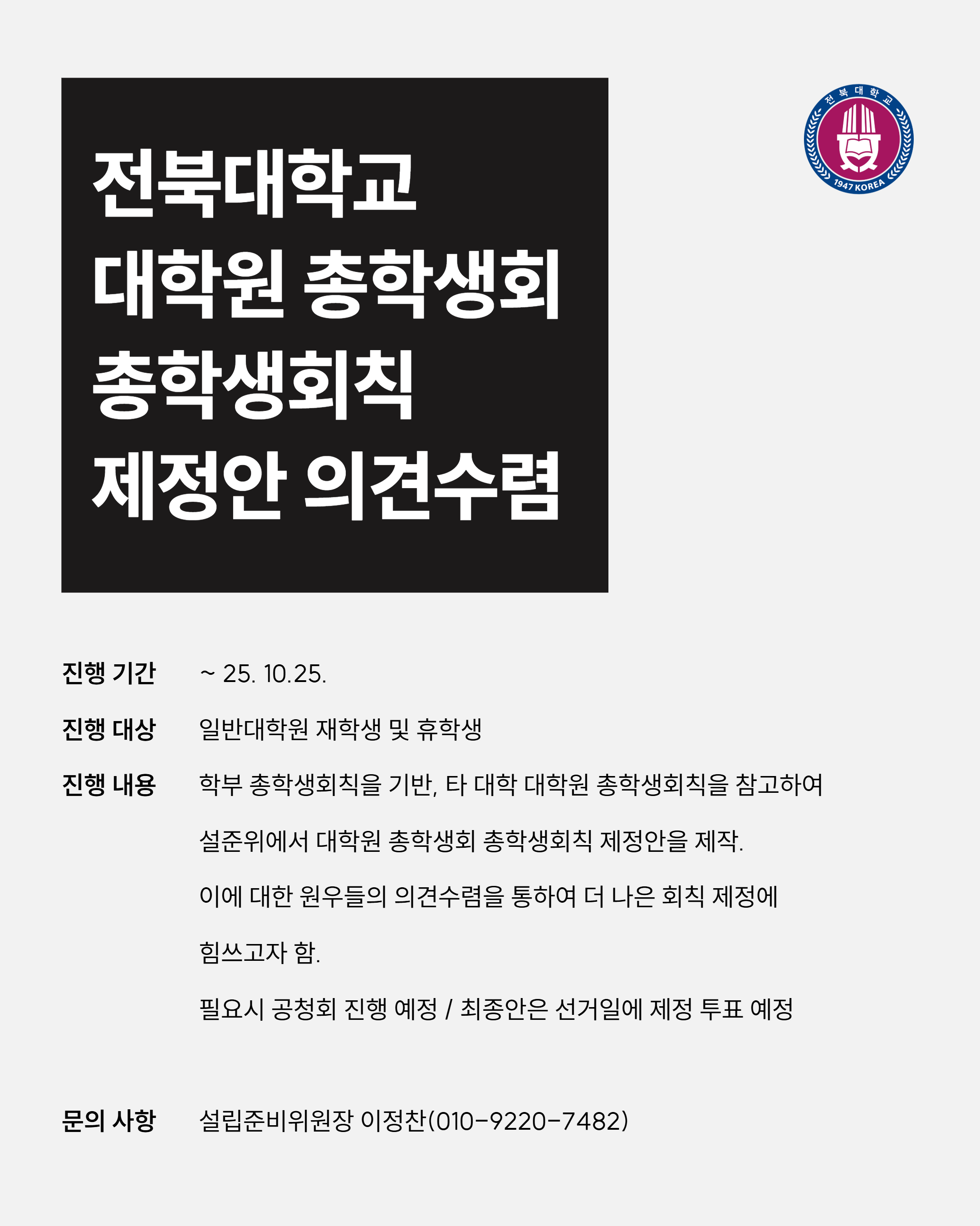 전북대학교 대학원 총학생회 설립준비위원회입니다.