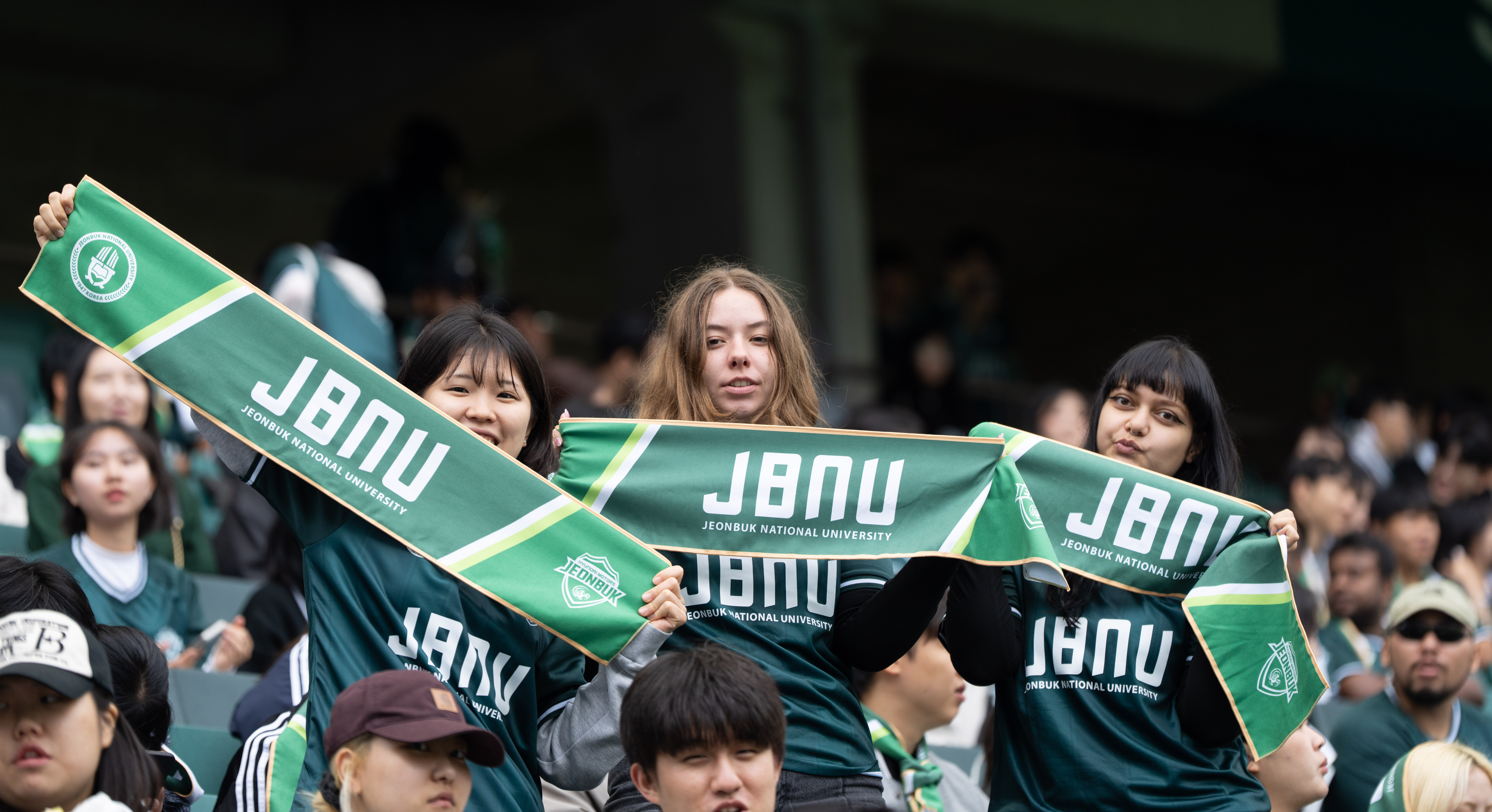 전북대학교와 전북현대모터스축구단(단장 이도현)이 지난 주말 ‘파트너데이’를 통해 하나 된 열정을 보여줬다. 10월 18일 오후 2시 수원FC와의 ‘2025 하나은행 K리그1 33라운드’ 경기가 전북대학교 파트너데이로 지정되면서, 양오봉 총장을 비롯한 교직원과 학생, 외국인 유학생 등 2,000여 명의 전북대 구성원들이 대거 경기장을 찾아 응원전을 펼쳤다.