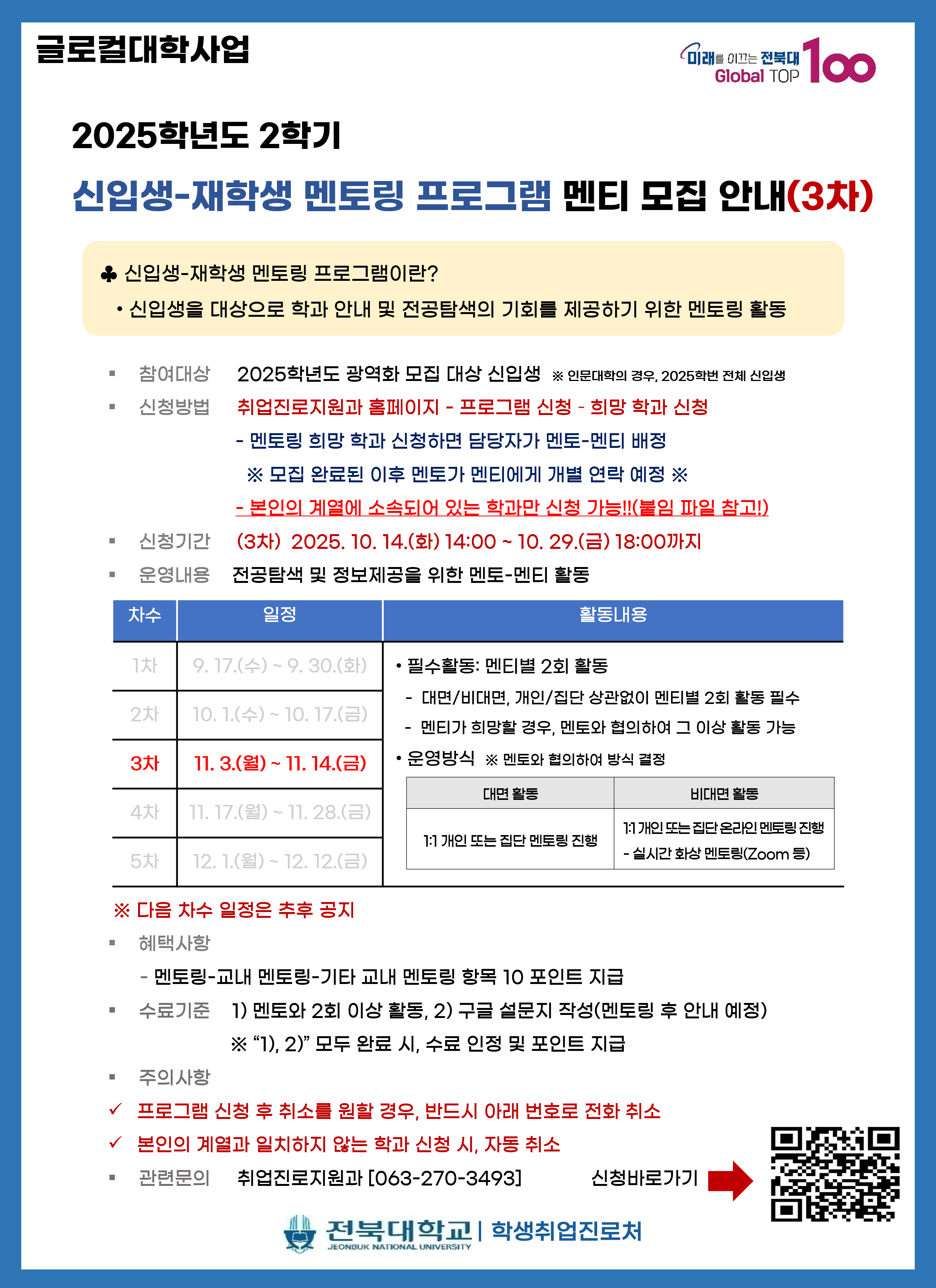 본 프로그램은 2025학년도 광역화 모집 대상 신입생에게 전공 탐색 기회를 제공하기 위해 개설된 멘토링 프로그램입니다.