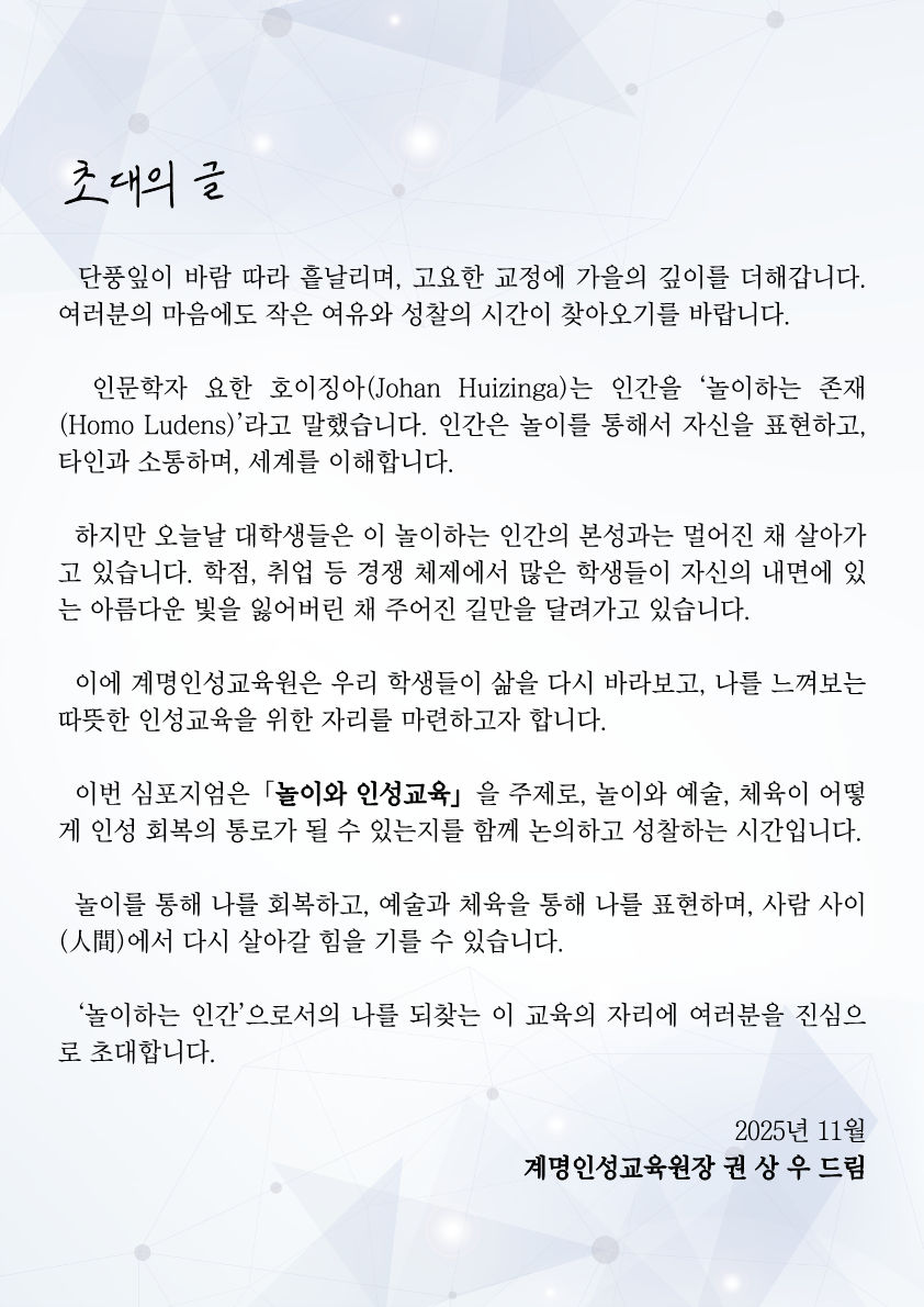 (계명대학교) 2025 계명인성교육원 인성교육 심포지엄 개최 안내