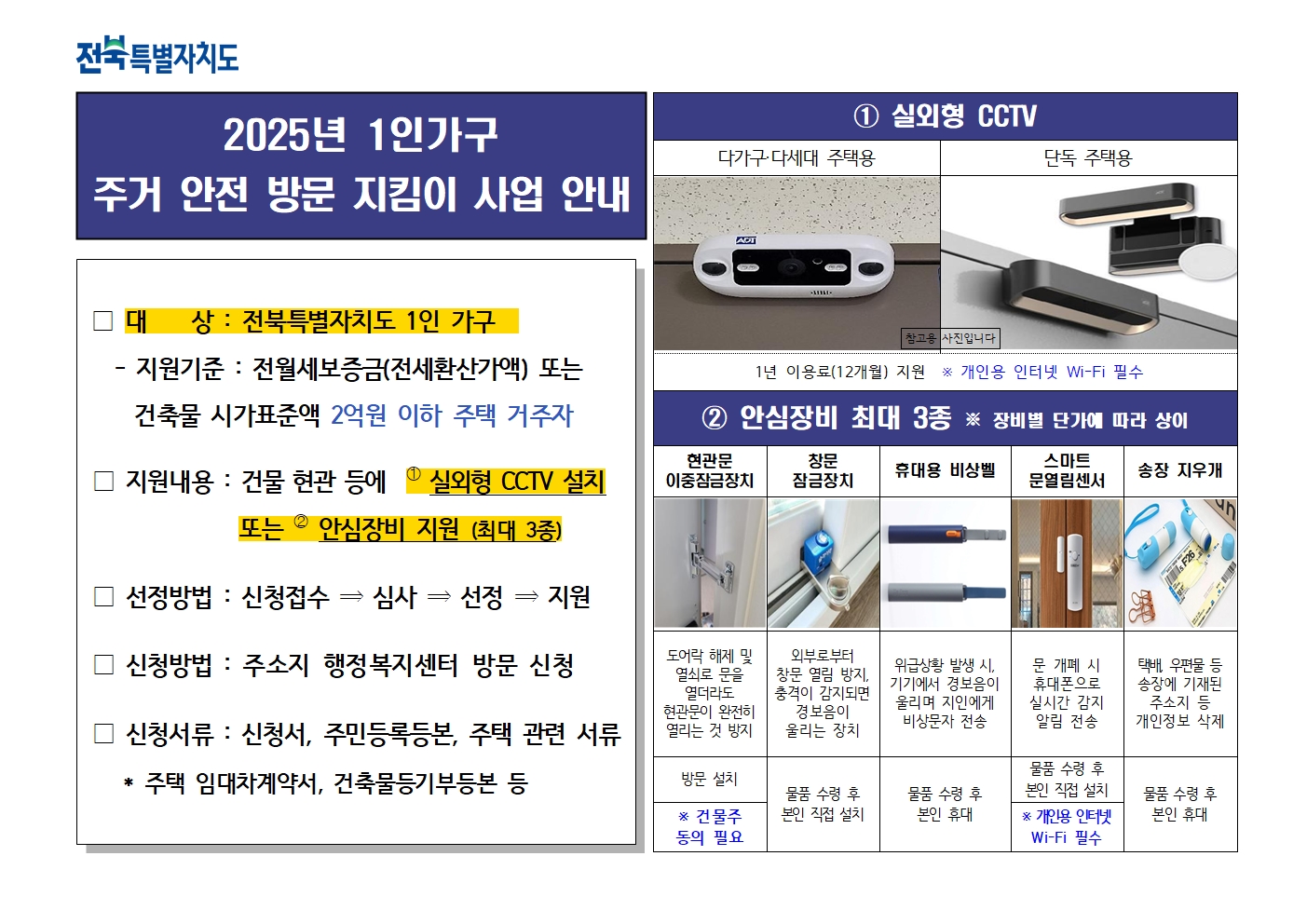 (전북특별자치도) 「1인가구 주거 안전 방문 지킴이 지원 사업」 안내