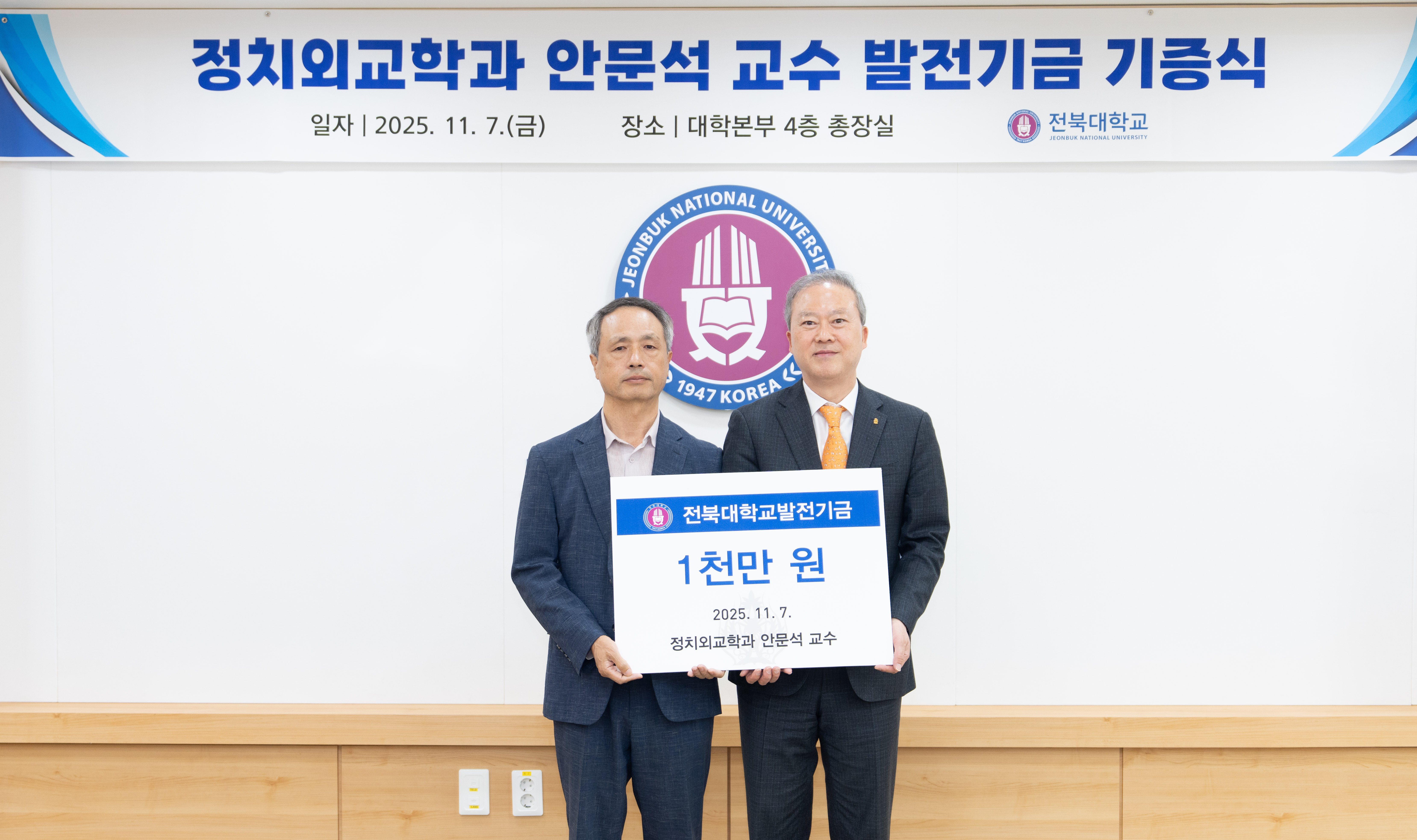 전북대학교 정치외교학과 안문석 교수가 학생들의 글로벌 역량 강화와 학과 교육 환경 개선을 위해 1천만 원의 발전기금을 기부했다.