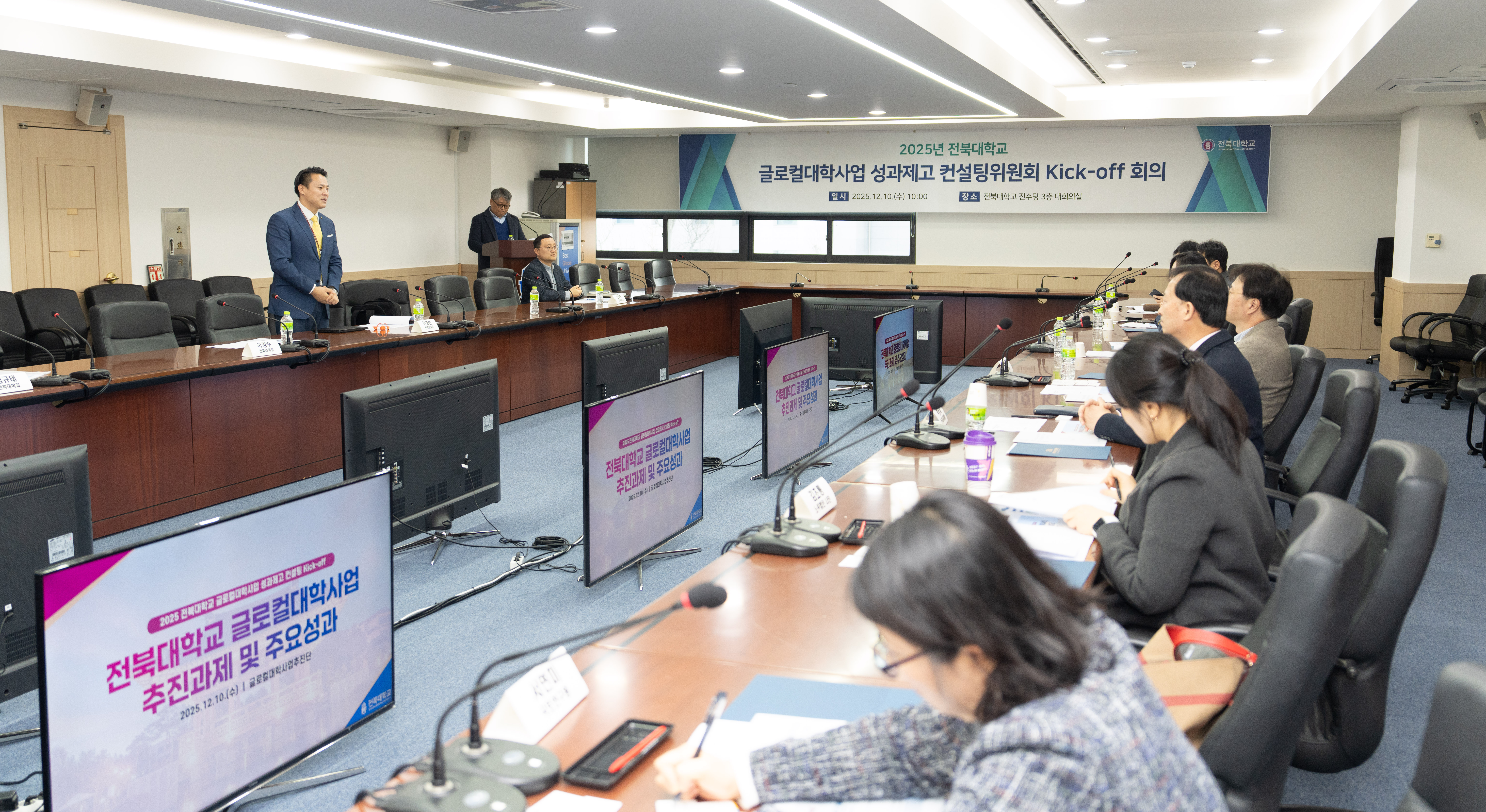 전북대학교가 글로컬대학30 사업 3년 차를 맞아 가시적 성과 창출을 위해 분야별 혁신 전략 컨설팅에 본격 착수했다. 전북대는 10일 진수당에서 ‘글로컬대학사업 성과제고를 위한 컨설팅 킥오프(Kick-off) 회의’를 개최했다.