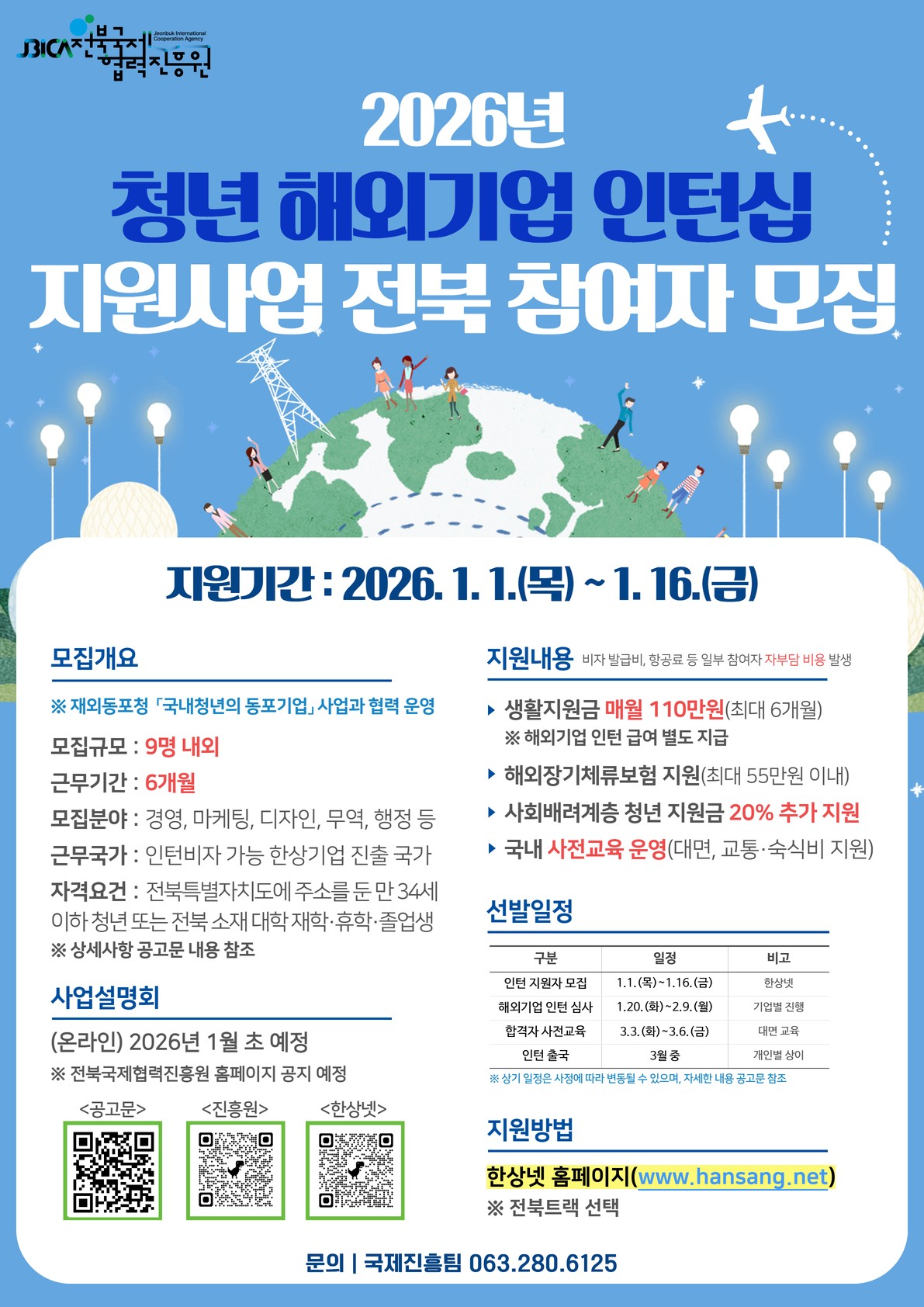 2026년 청년 해외기업 인턴십 지원사업 전북 참여자 모집(1.1.~1.16.)