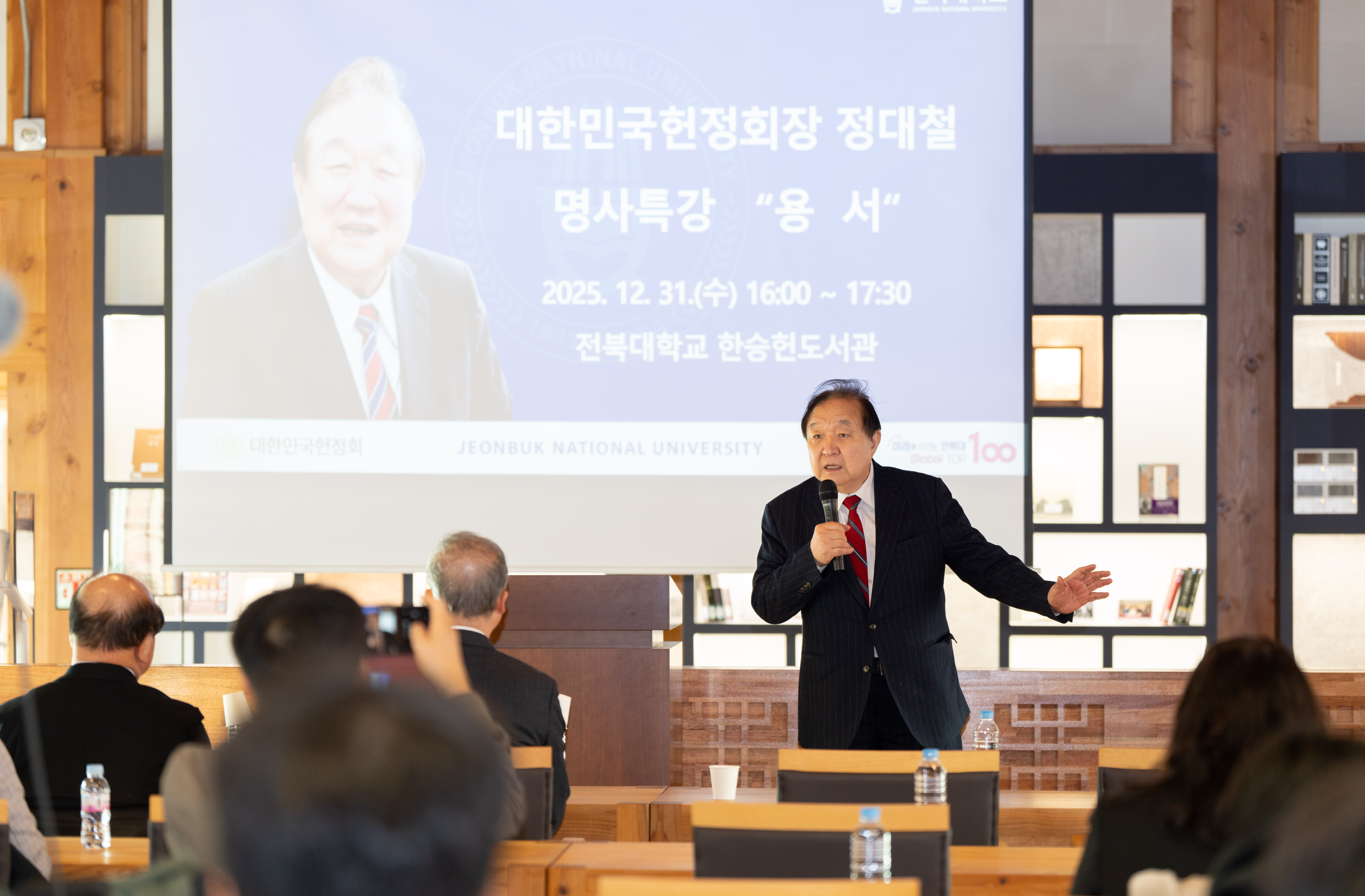 전북대학교는 12월 31일 정대철 대한민국헌정회장이 대학을 찾아 캠퍼스 주요 시설을 둘러보고 ‘용서’를 주제로 한 특강을 했다고 밝혔다.