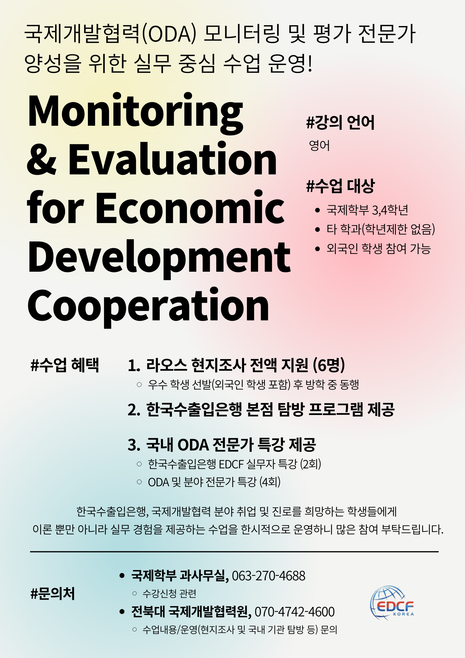 (수업 내용, 현지조사·기관탐방 관련 문의) 전북대 국제개발협력원 070-4742-4600-