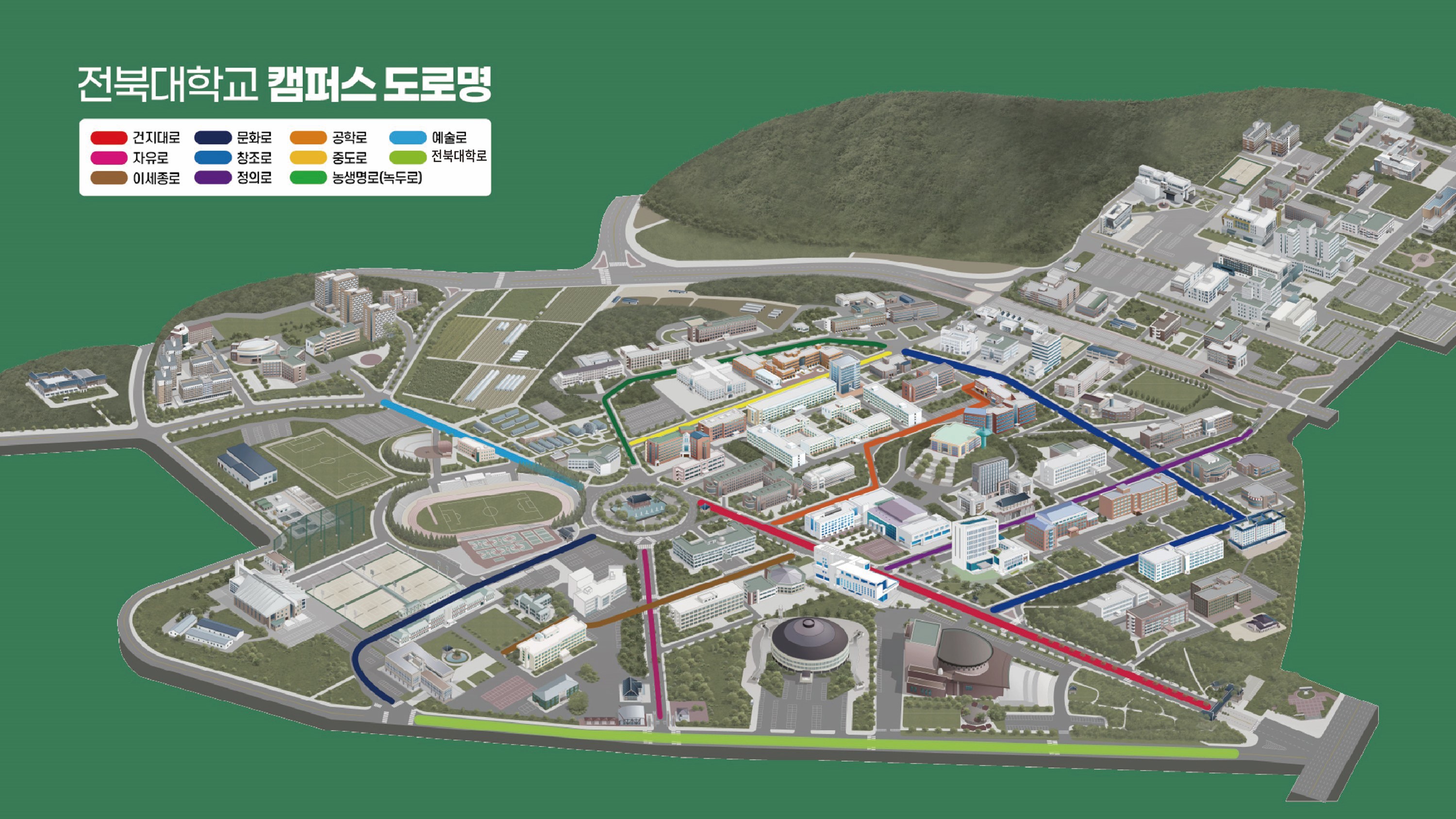 전북대학교가 캠퍼스 주요 구간에 도로명을 부여해 건물의 위치 정보 제공과 캠퍼스 공간의 상징성 강화를 동시에 추진한다. 도로명 체계 정비를 통해 구성원과 방문객의 길 찾기 편의를 높이고, 도로 구간별 의미를 부여해 캠퍼스 정체성을 보다 선명하게 드러냈다는 평가를 받고 있다.
