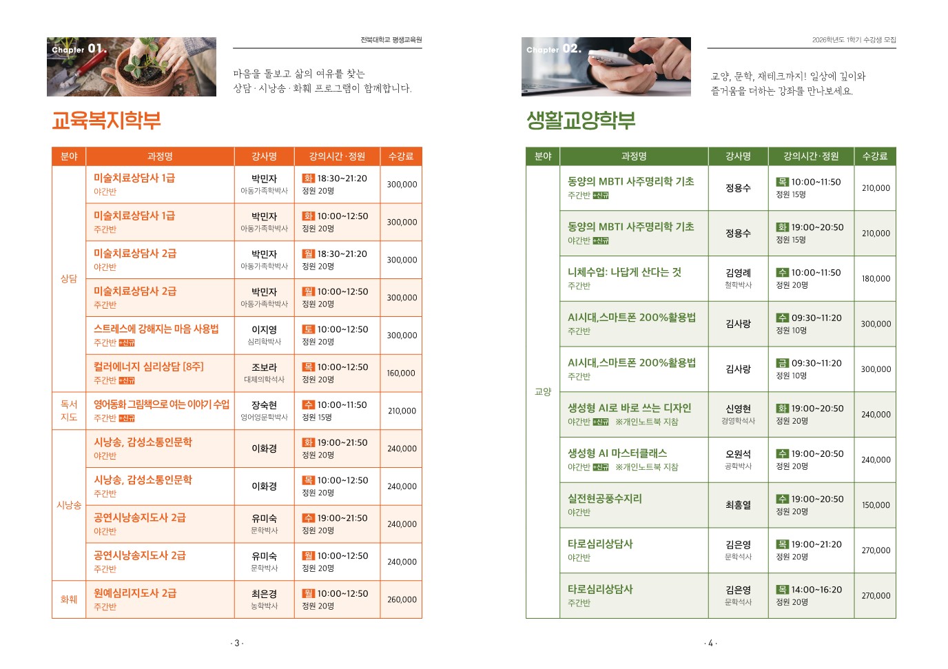 2026학년도 1학기(봄) 수강생 모집을 붙임과 같이 안내합니다.