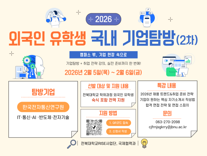 문의: 국제협력과 ☎ 063-270-2098 / ✉️ cjfrnjsgkrry@jbnu.ac.kr