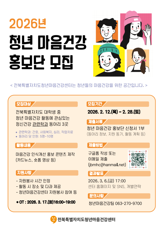 [행복드림] 전북특별자치도 청년마음건강센터 청년 마음건강 홍보단 모집 안내