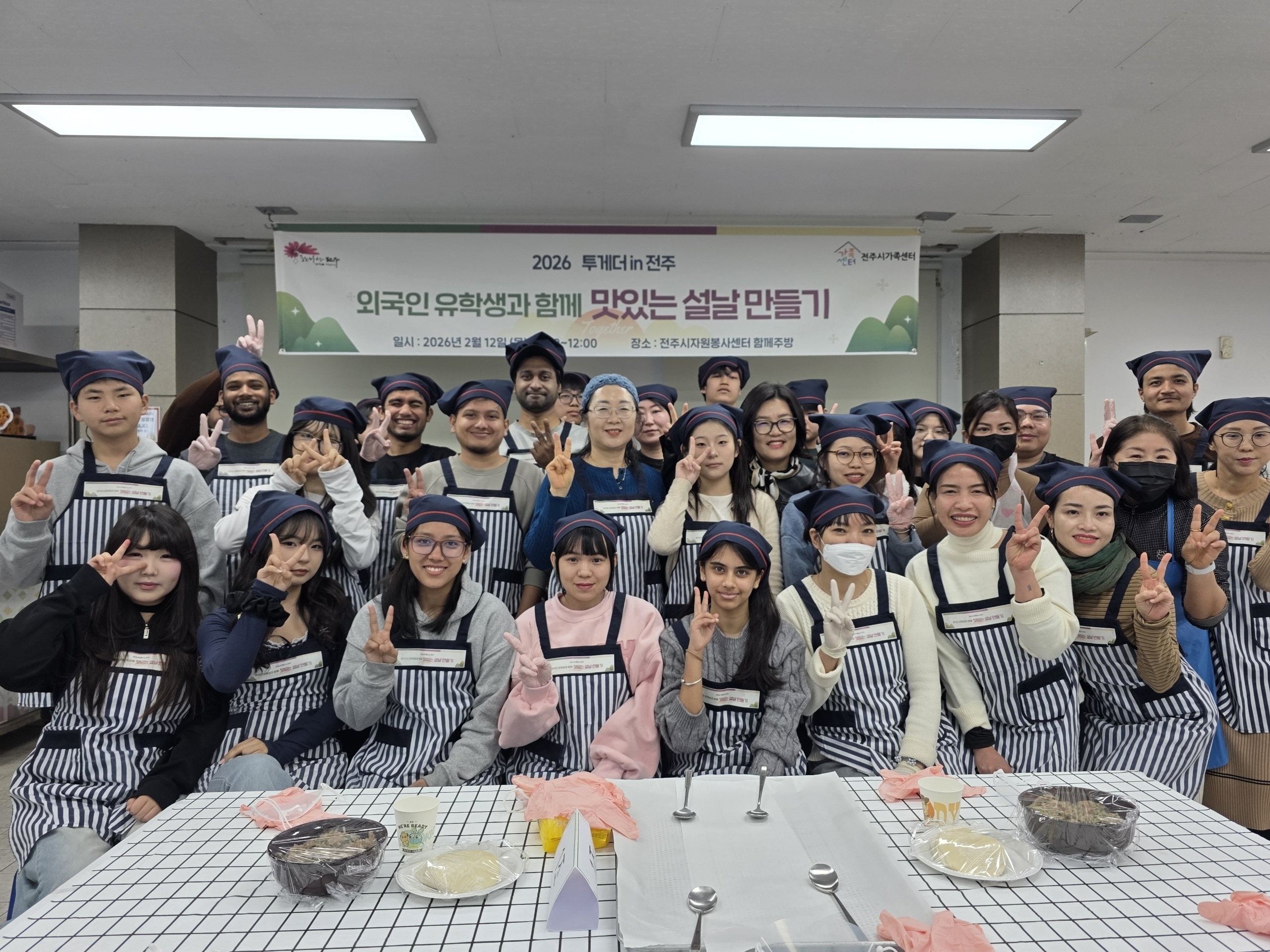 전북대가족센터사업단(단장 윤명숙 교수)이 운영하는 전주시가족센터(센터장 이해경)는 2월 12일 오전 10시 30분부터 오후 1시까지 전주시자원봉사센터 함께주방 3호에서 외국인 유학생과 외국인 주민을 대상으로 2026년 ‘투게더 in 전주’ 프로그램의 일환인 ‘맛있는 설날 만들기’ 행사를 성황리에 개최했다.
