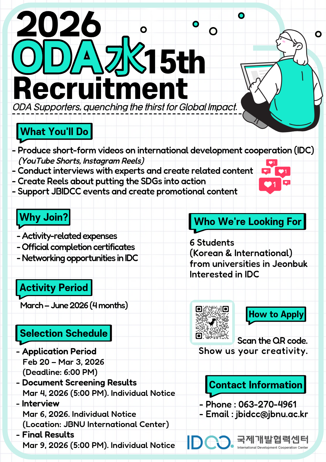 전북국제개발협력센터에서 2026년 상반기 전북지역 대학생 ODA 홍보단 ODASU(水) 15기를 모집합니다!