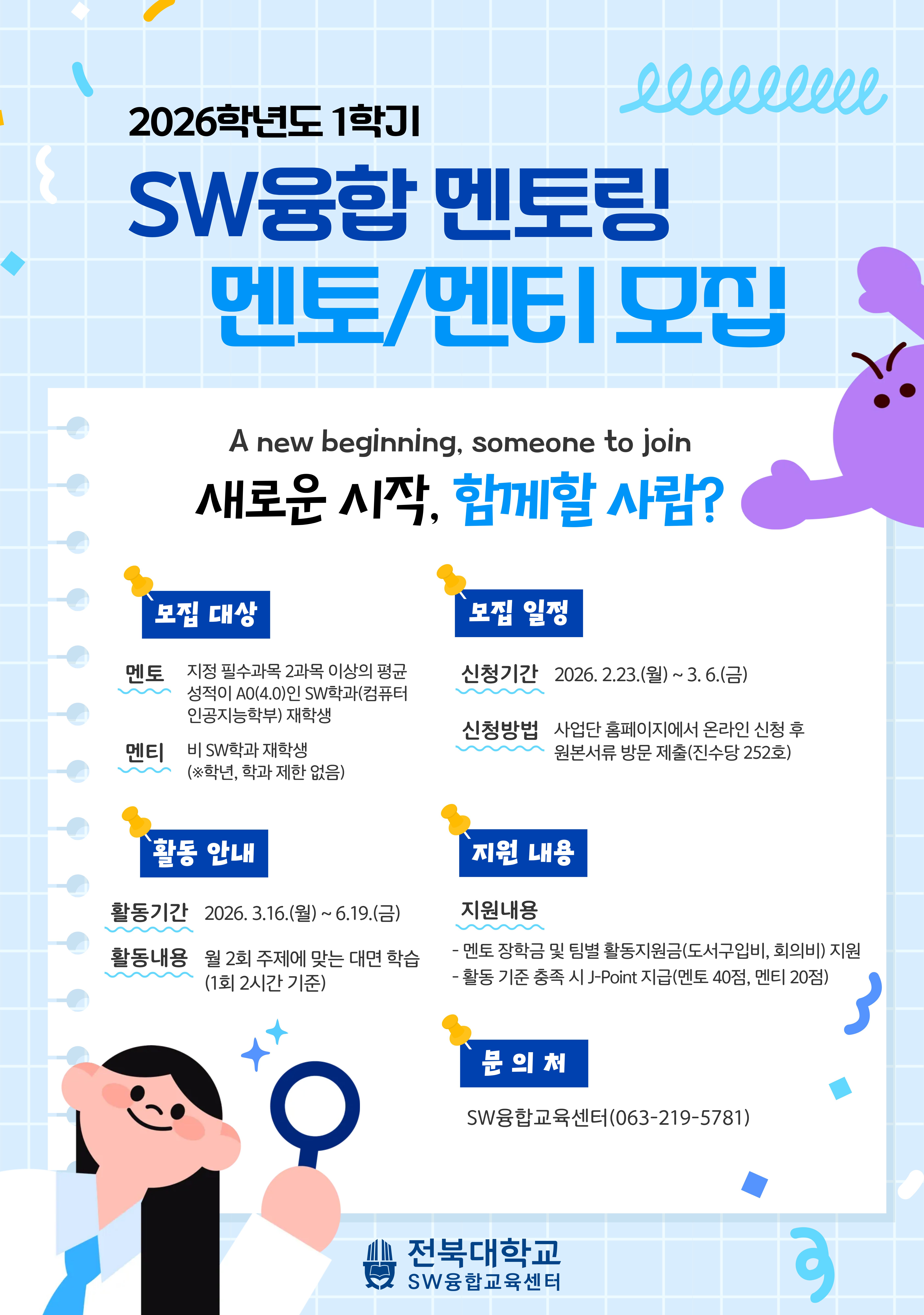 [SW융합교육센터] 2026학년도 1학기 SW융합 멘토링 프로그램 멘토/멘티 모집 안내