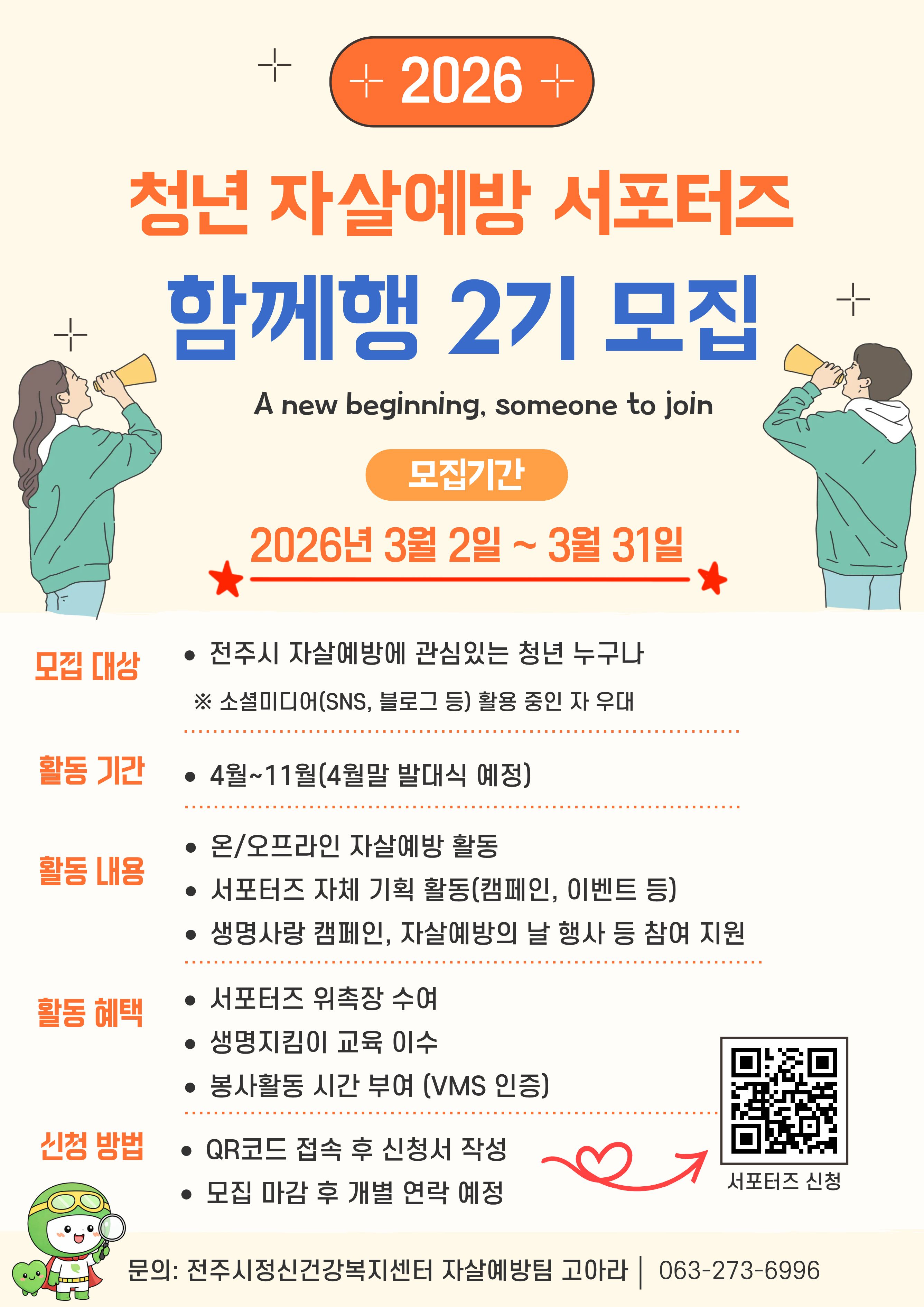 전주시 정신건강복지센터 청년 자살예방 서포터즈 함께행 2기 모집 안내