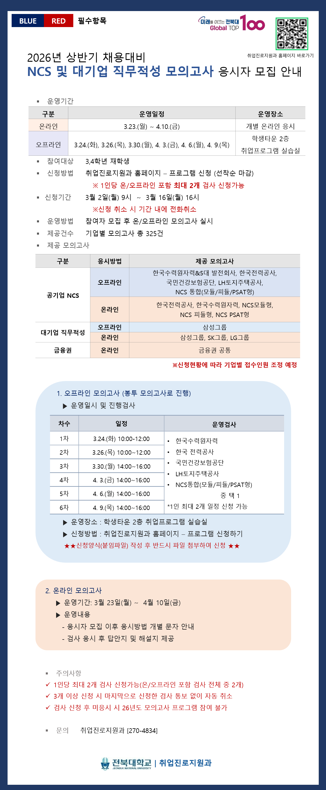 [BLUE/RED필수] 2026 상반기 NCS 및 기업 직무적성 모의고사 참여자 모집 안내