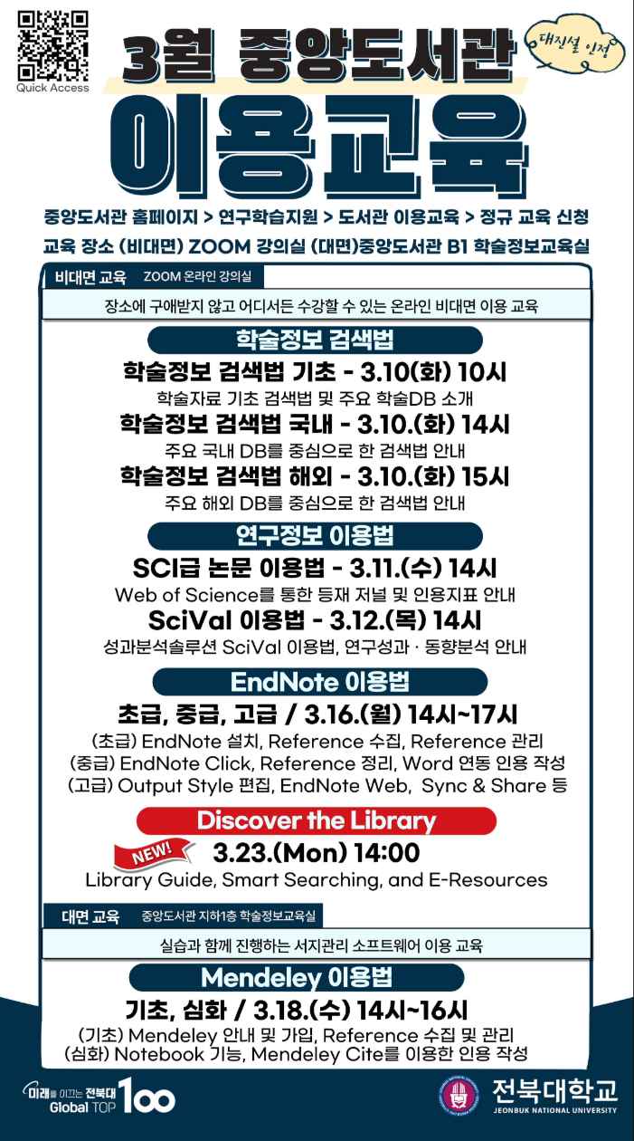 [중앙도서관] 3월 학술정보 이용교육 안내
