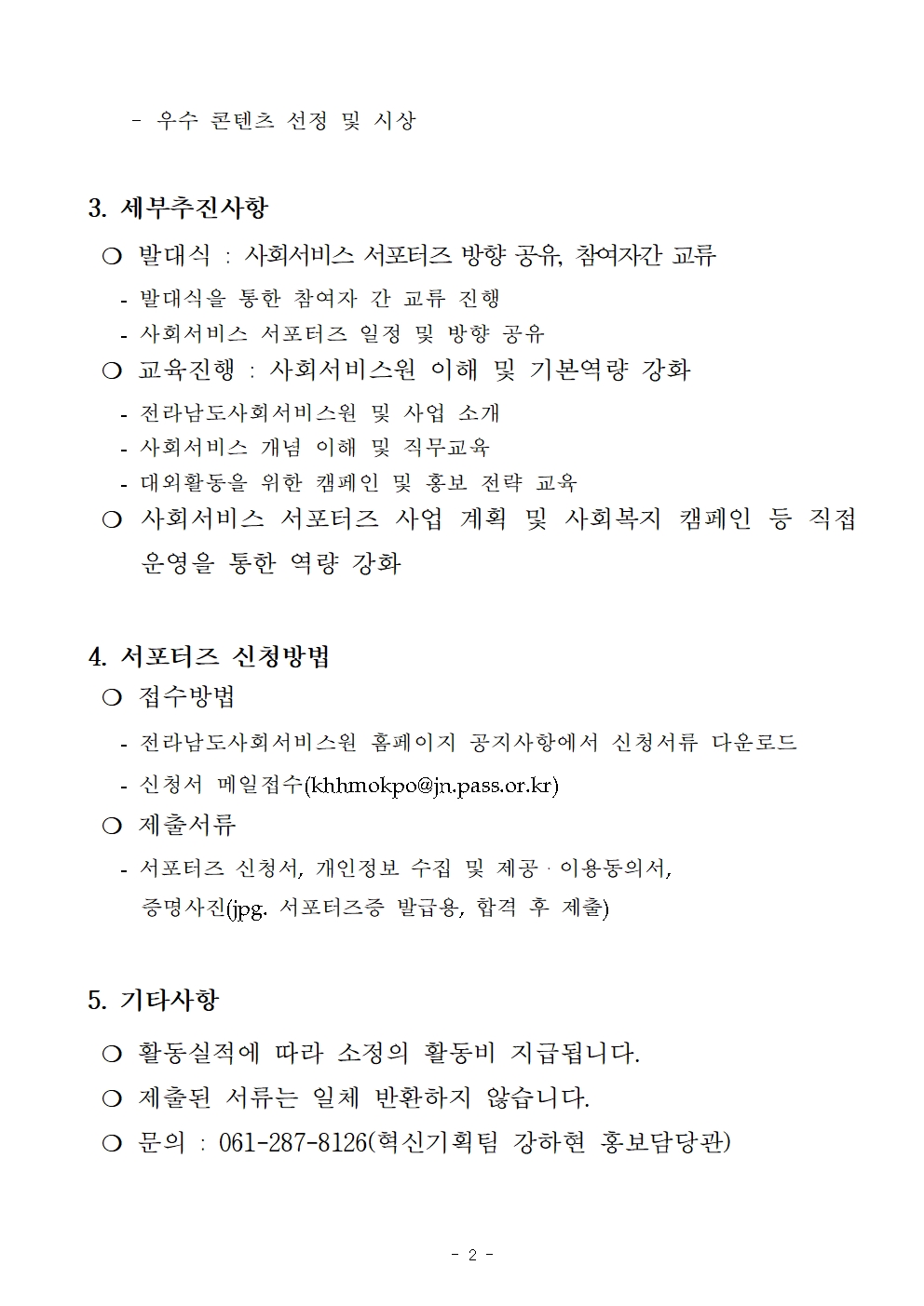 전라남도사회서비스원에서 2026년 전라남도사회서비스원 SNS서포터즈 참여자를 모집합니다. 관심있는 학생들의 참여 바랍니다.