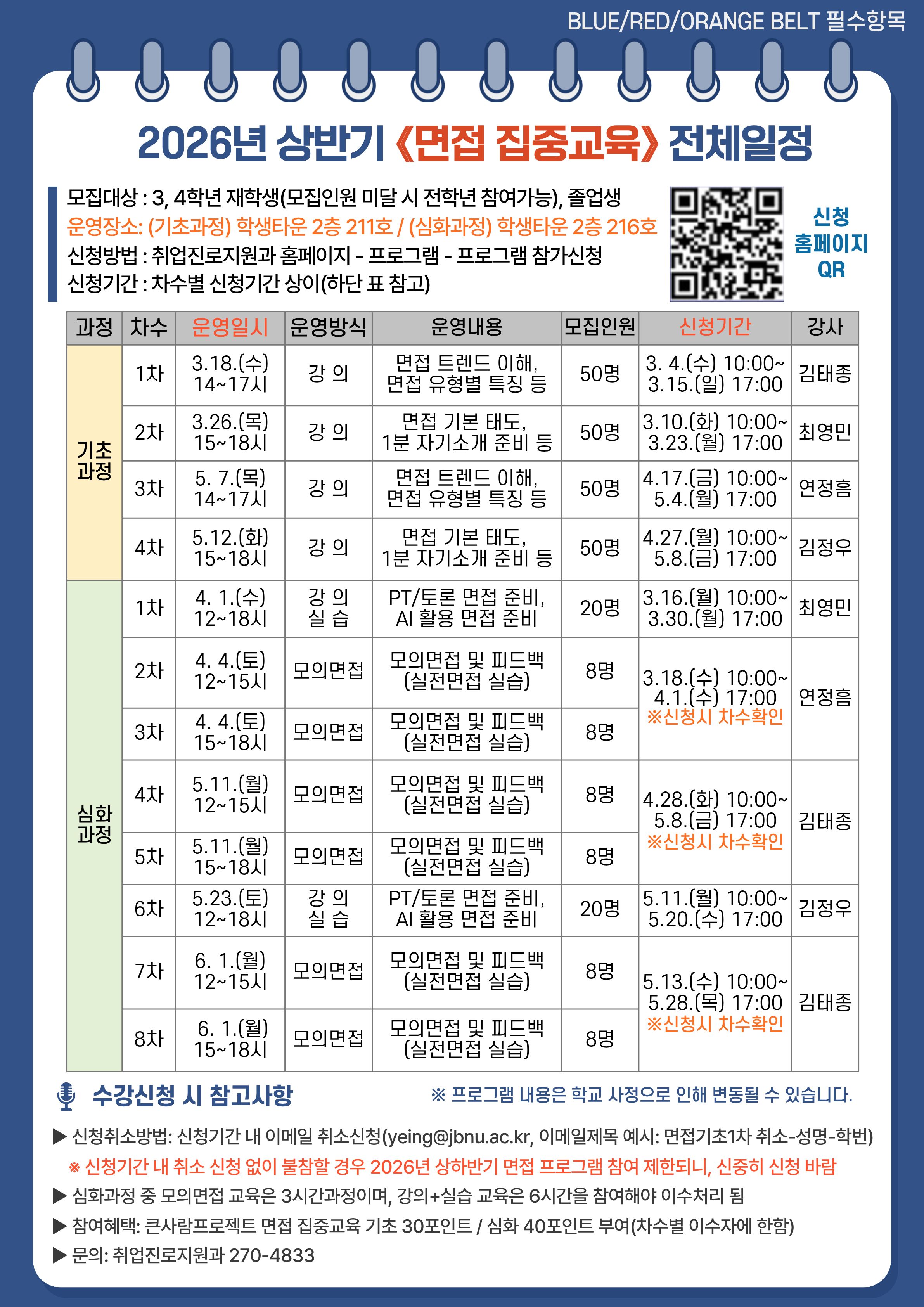 [BLUE/RED/ORANGE BELT] 2026년 상반기 면접 집중교육 일정 및 신청 안내