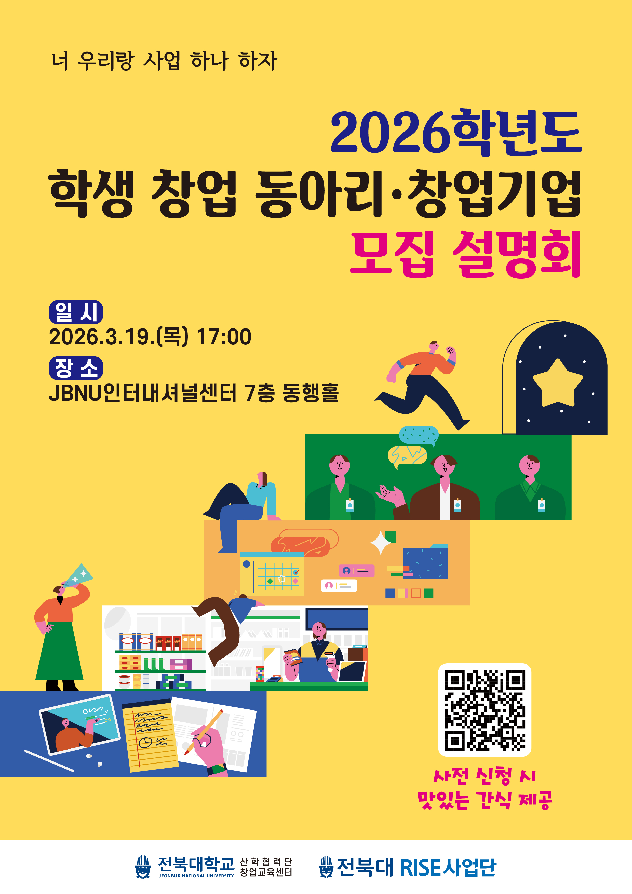 2026년 전북대학교 학생창업 지원사업 모집설명회 안내